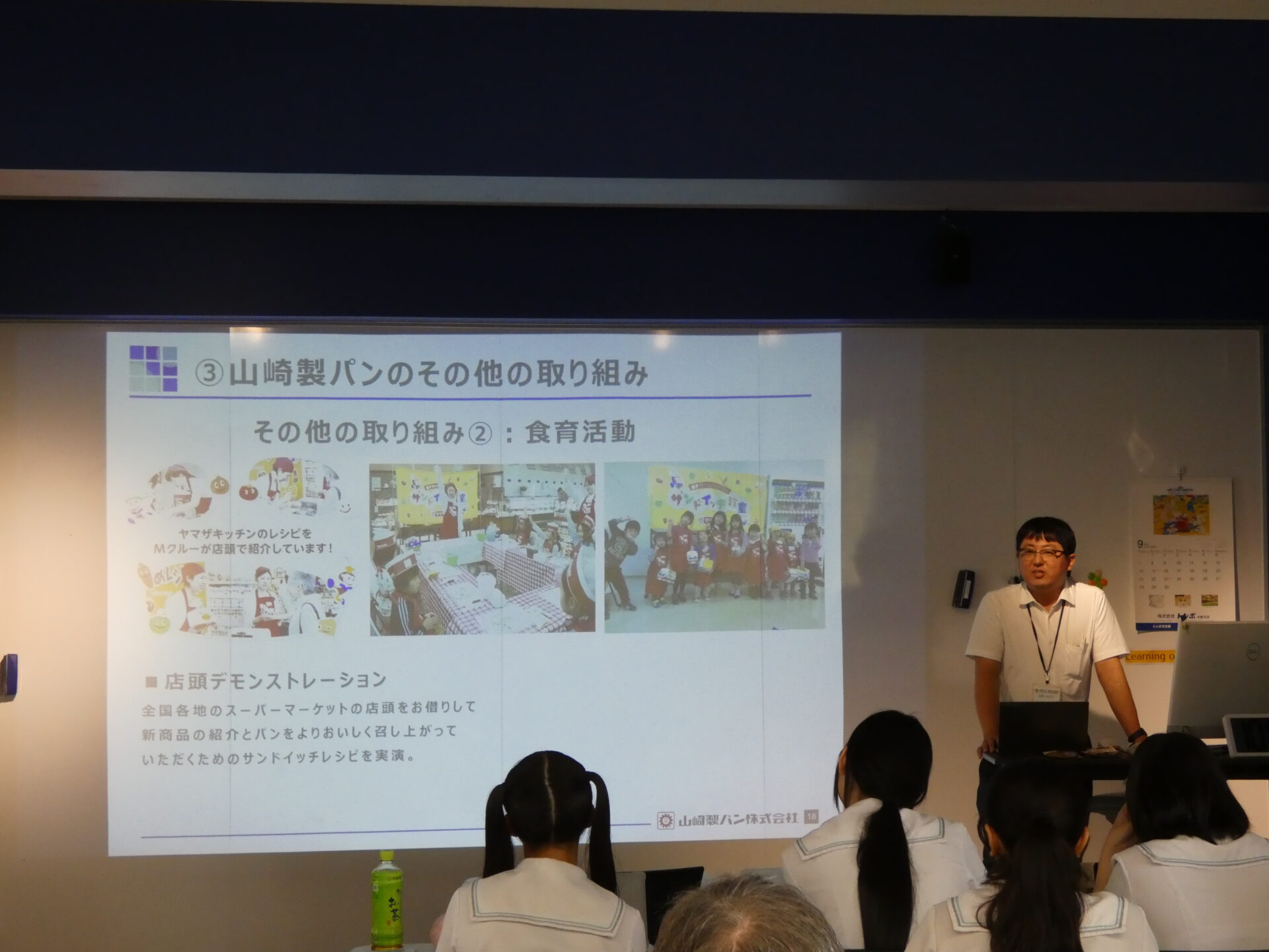 2025.10.09中学校高等学校Ⅰ類GSC中高_ヤマザキショップさんによる特別講演 講演会 9月にオープンをした校内コンビニを運営いただいているヤマザキショップさん。今日は、在校生に特別授業を実施していただきました。テーマはフードロスについて。いつも手に取る商品について、深く知ることができたようです。 在校生からの質問に1つ1つお答えいただきました。 加工から流通、保存について詳しく教えていただきました。
