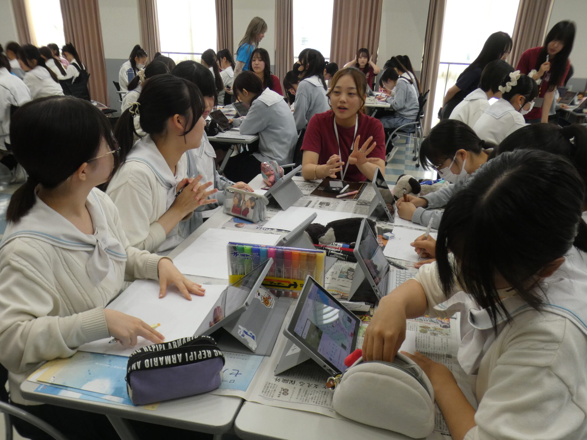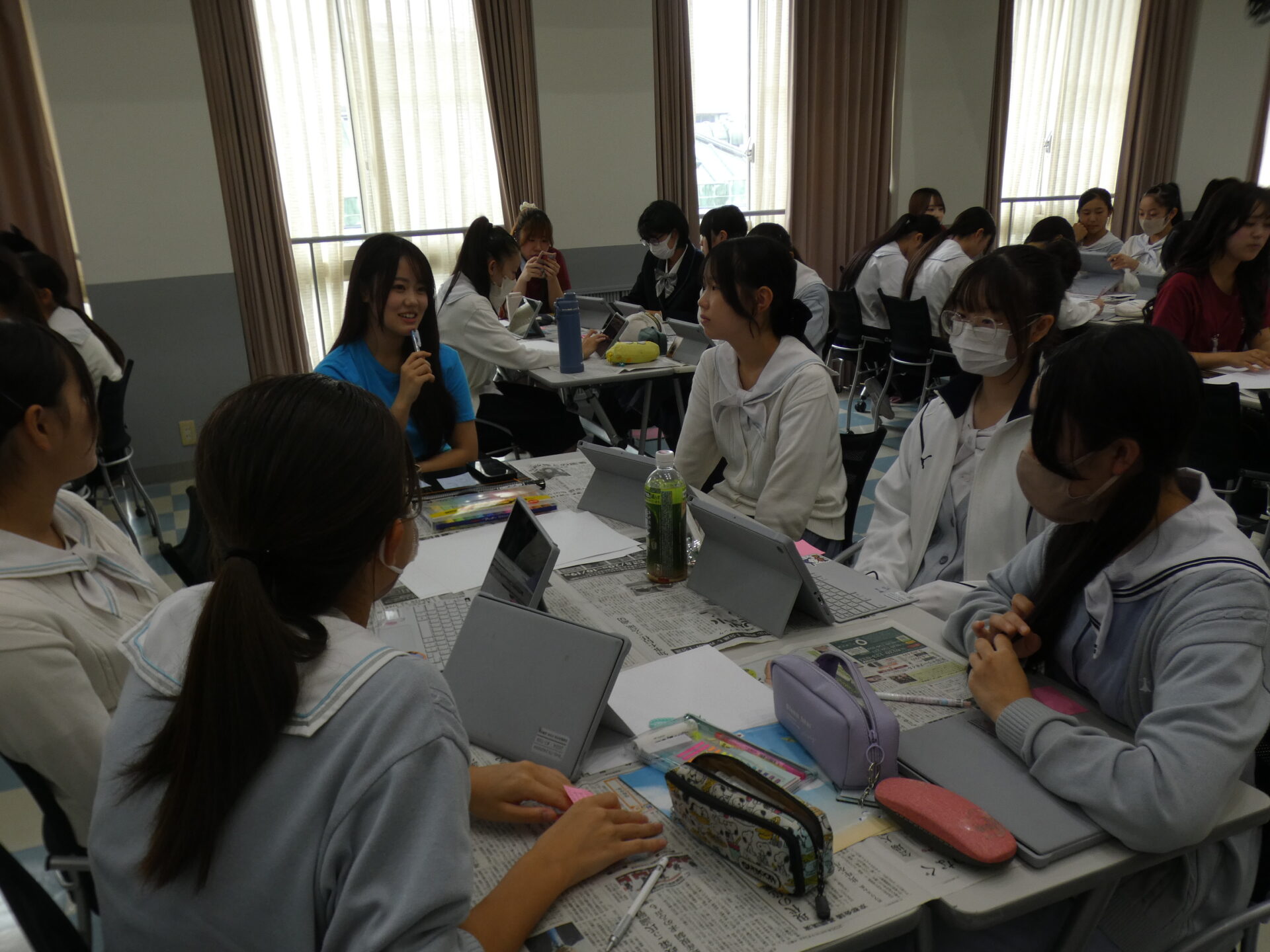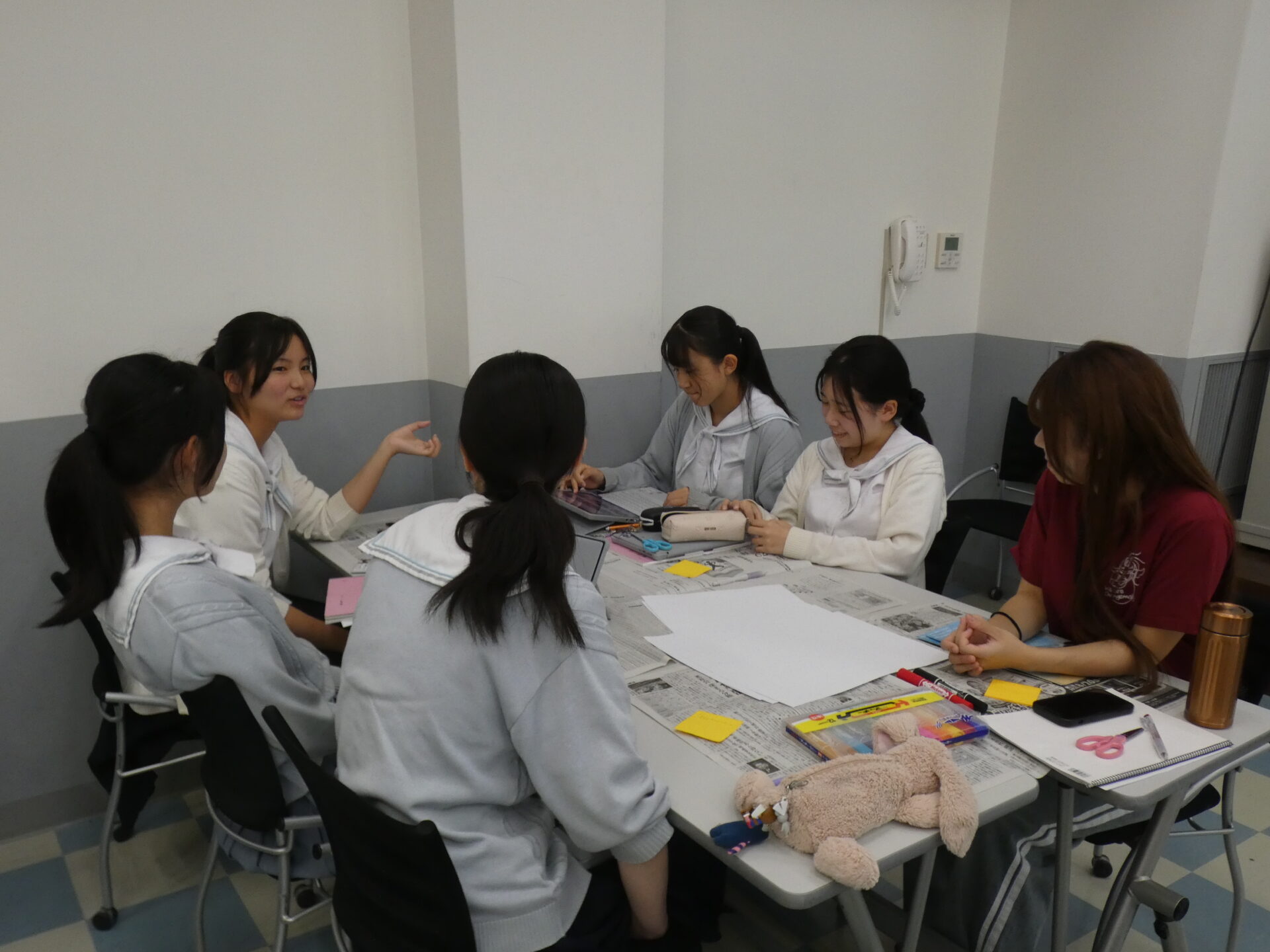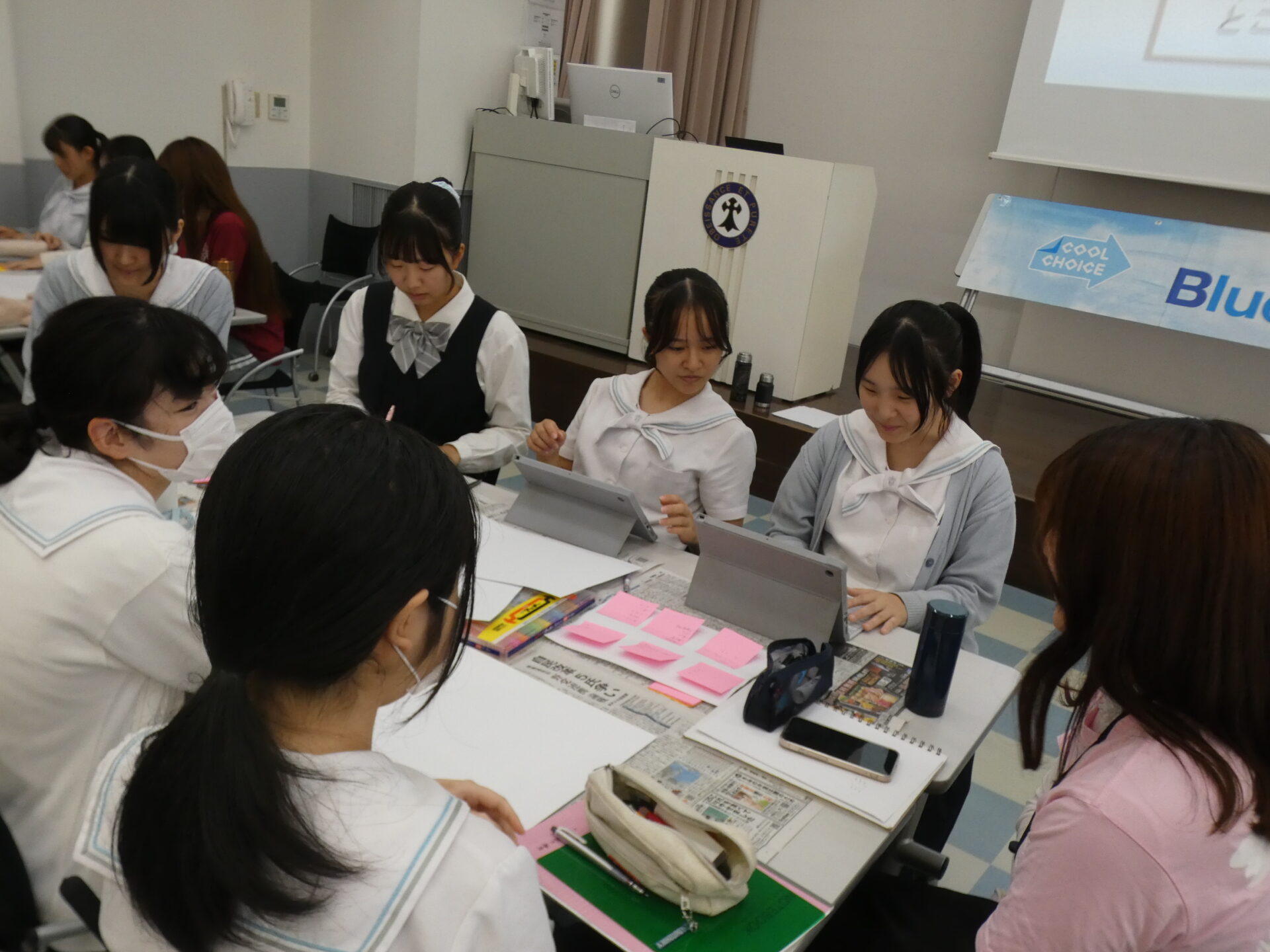講演後には、1グループに1人の大学生がサポートに入っていただき、環境問題についてグループワークを実施しました。意見が接触的に飛び交います。