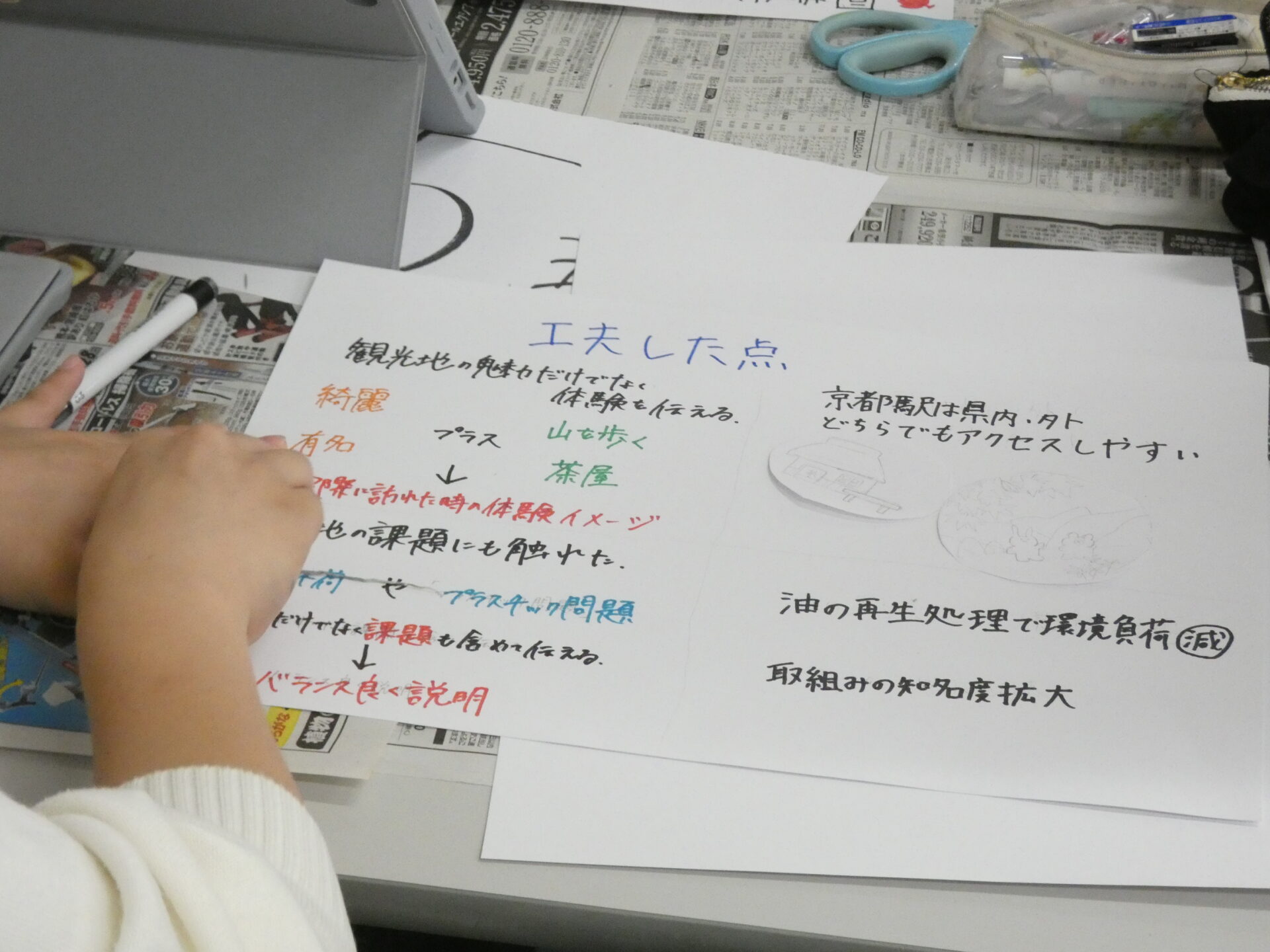 京都をテーマにエコツアーを考えたようです。即興ですが、どのグループもスムーズに発表しておりました。
