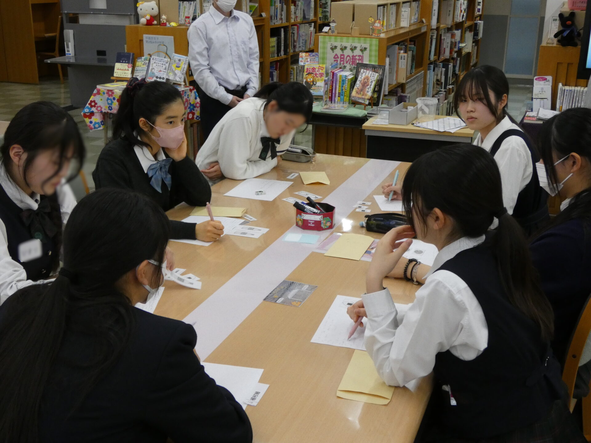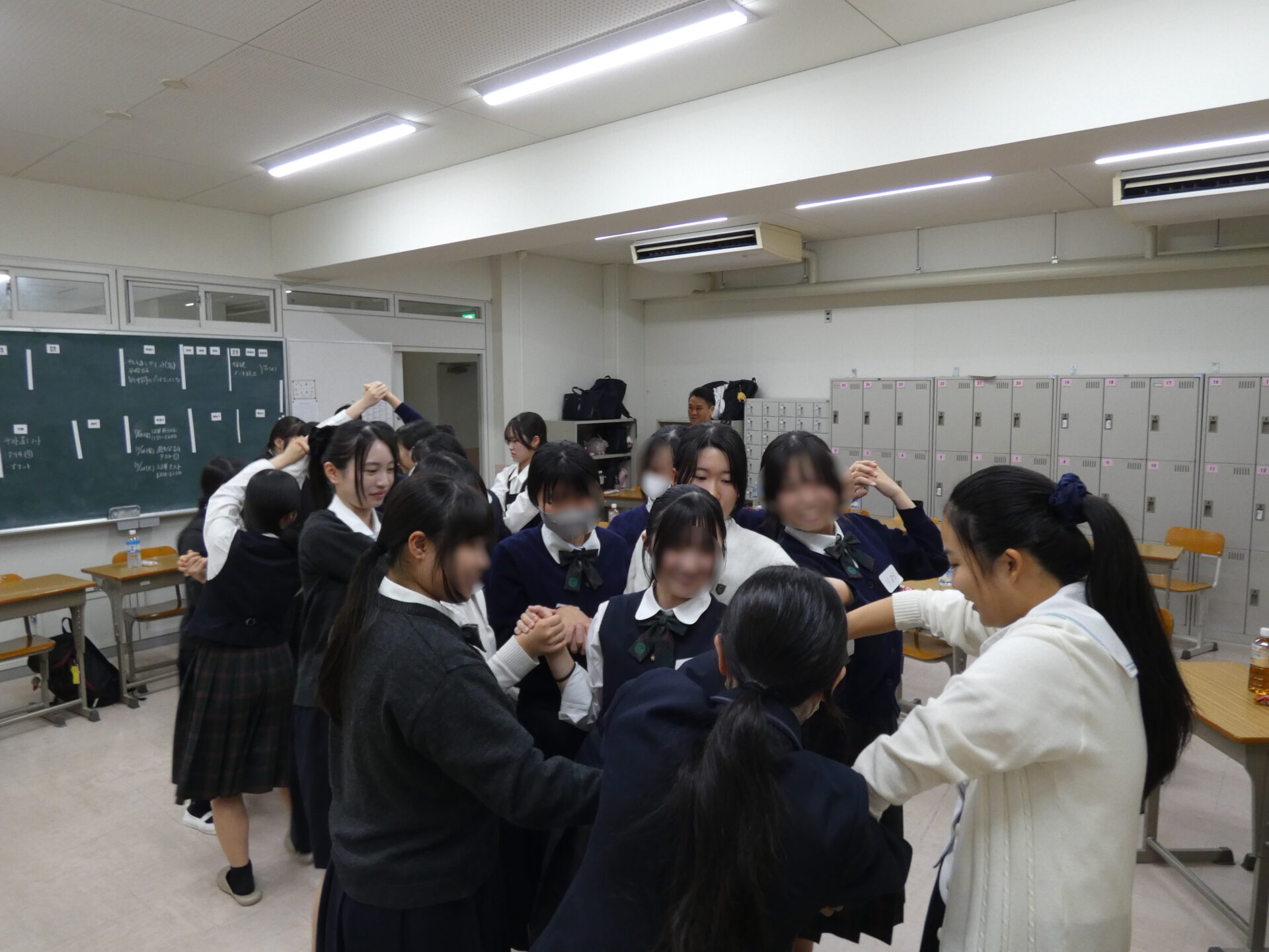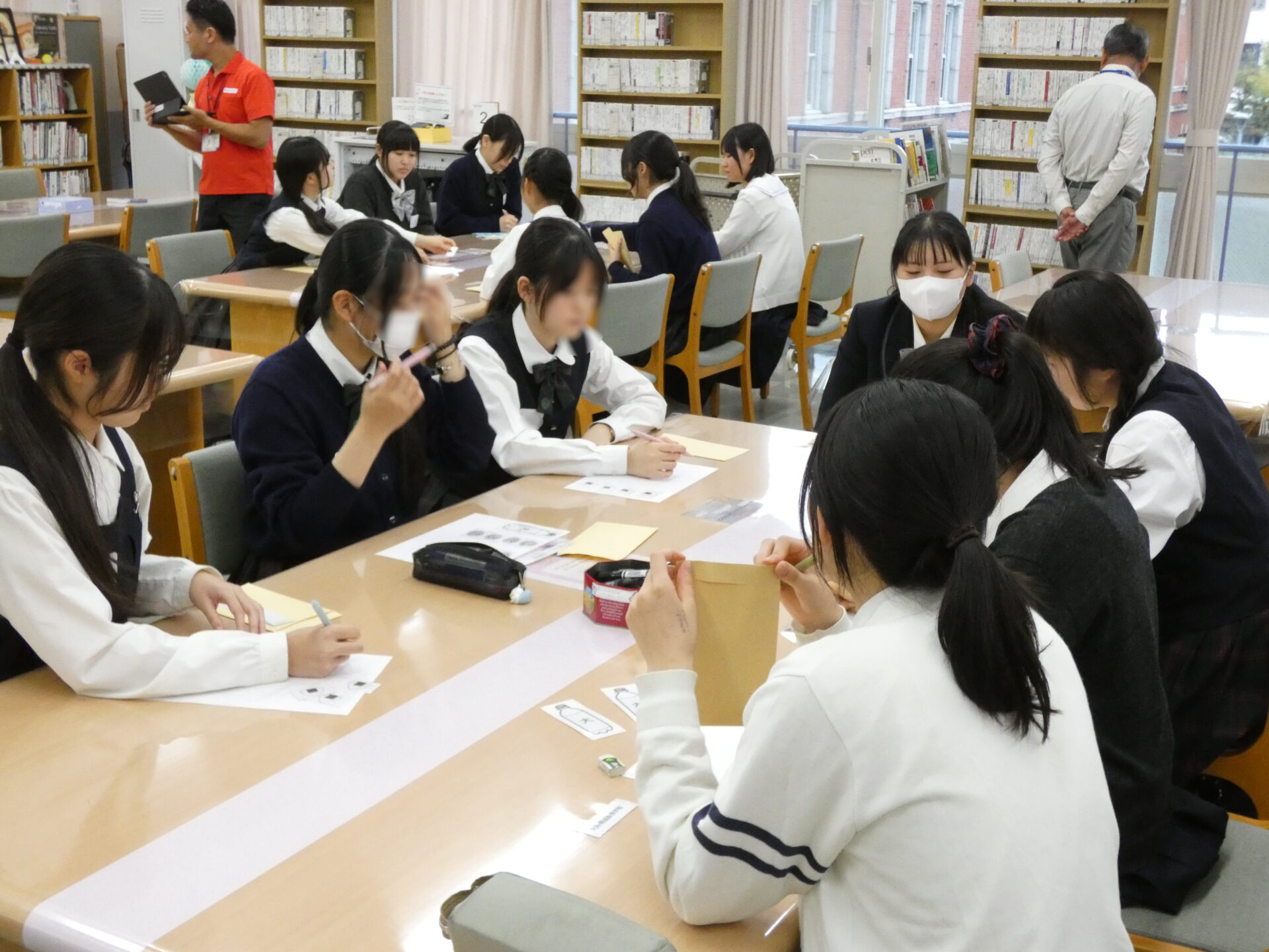 交流内容は「防災」を学ぶためのワークショップ」とのことでした。ワークショップは大阪桐蔭高校の生徒さんと本校生徒が混ざる形で行われました。初めはお互い緊張していましたが、お互いボランティア活動を中心に活動をしているクラブとのことですぐに打ち解け合っておりました。