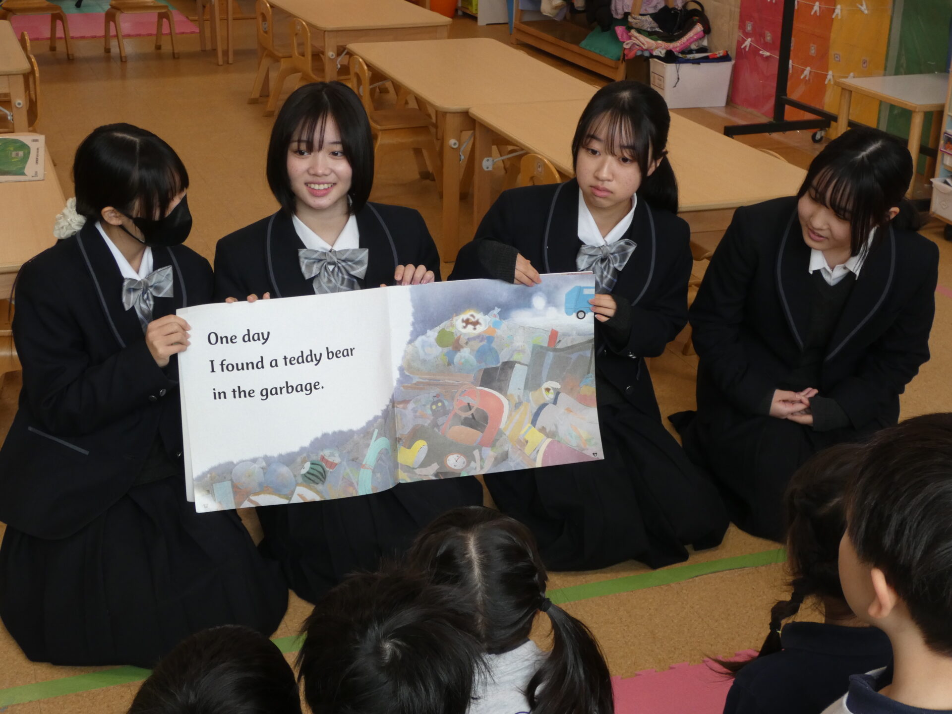 高校1年GSCに在籍する生徒さんが、本校キャンパス内にある聖母インターナショナルプリスクールを訪問しました。