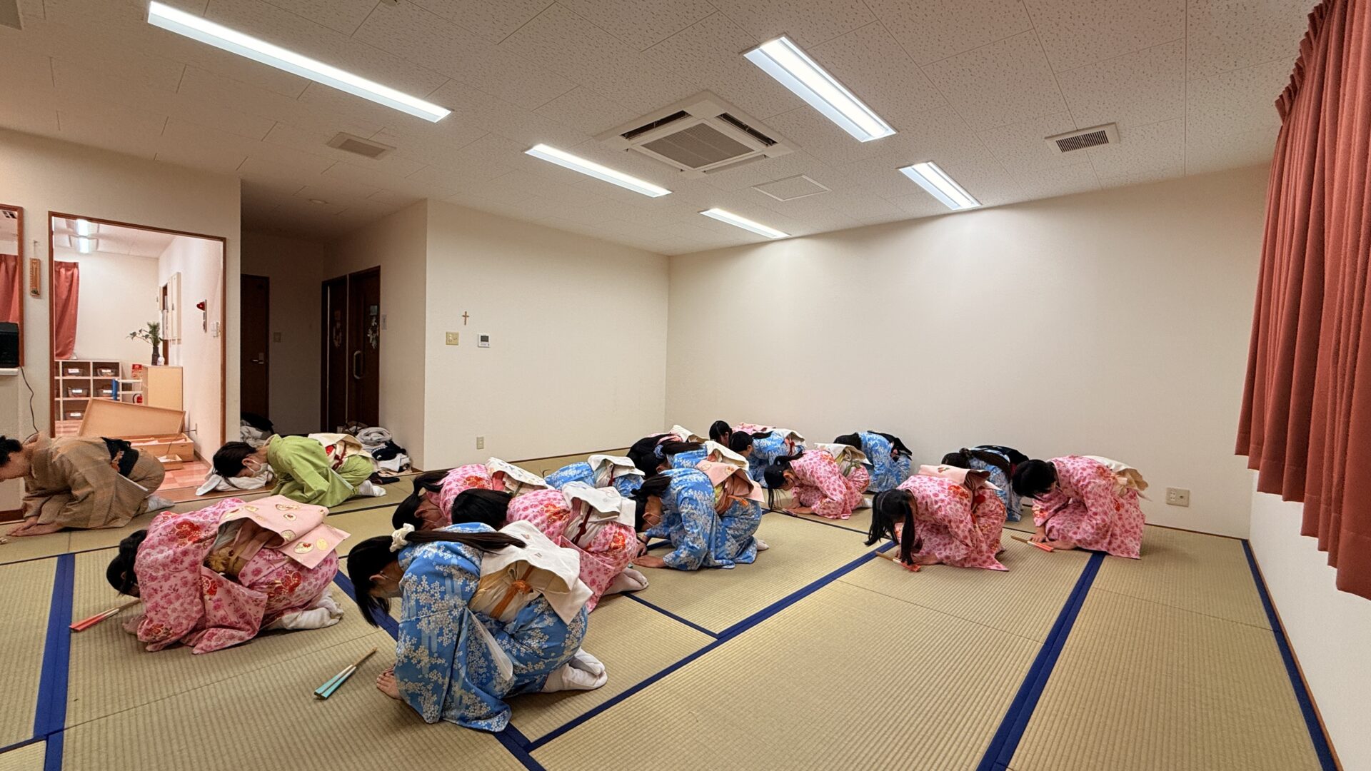 2025.02.16高等学校Ⅰ類Ⅰ類GSC高校_ライフマネジメントで日本舞踊 ライフマネジメント講演会 講師の方にご来校いただき、着物着付け、日本舞踊の講習をしていただきました。凛とした雰囲気でみなさん頑張っていました。最後の日舞もすごく上手でした。