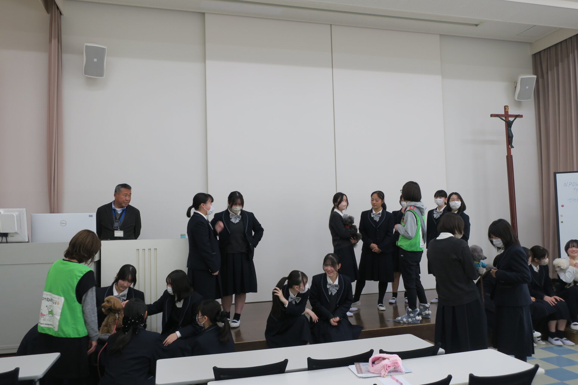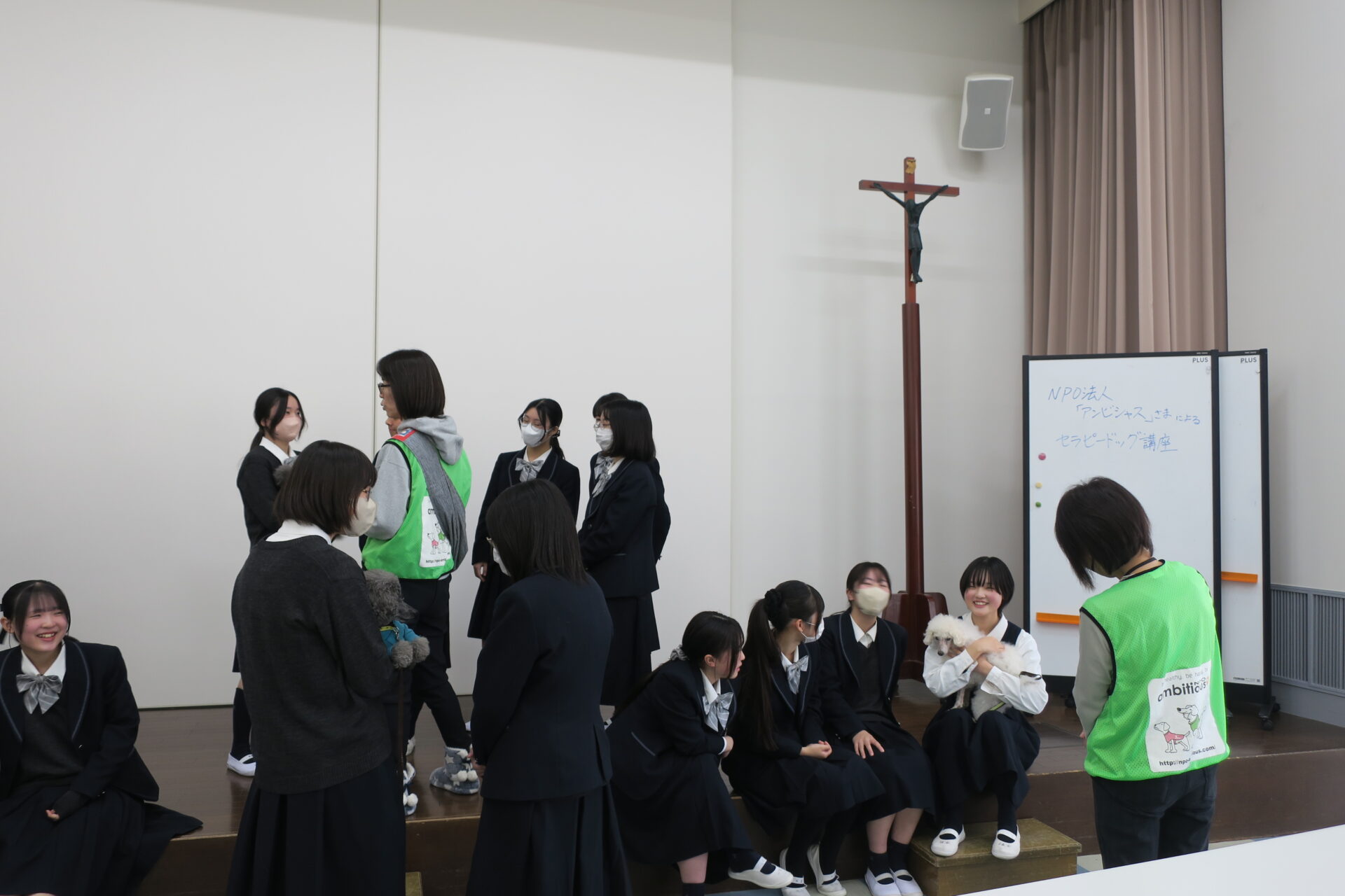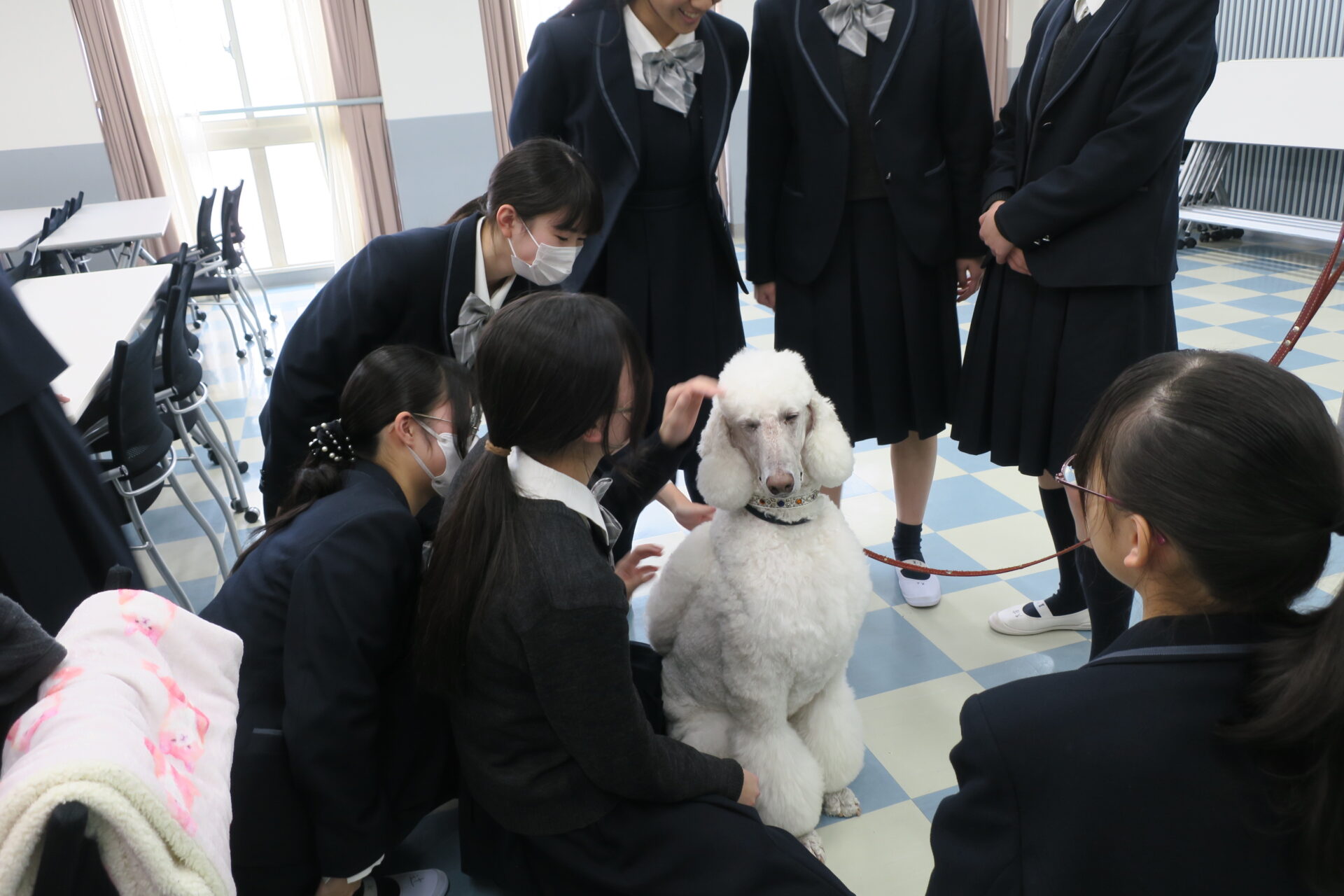 2024.12.26高等学校Ⅰ類Ⅰ類GSC高校_福祉実践セラピードッグ 講演会 12月12日(木)高校の選択授業「福祉実践」にて、NPO法人アンビシャス様にご協力いただき、セラピードッグ講座を実施しました。担当教員から写真の提供がありましたのでご紹介させていただきます。