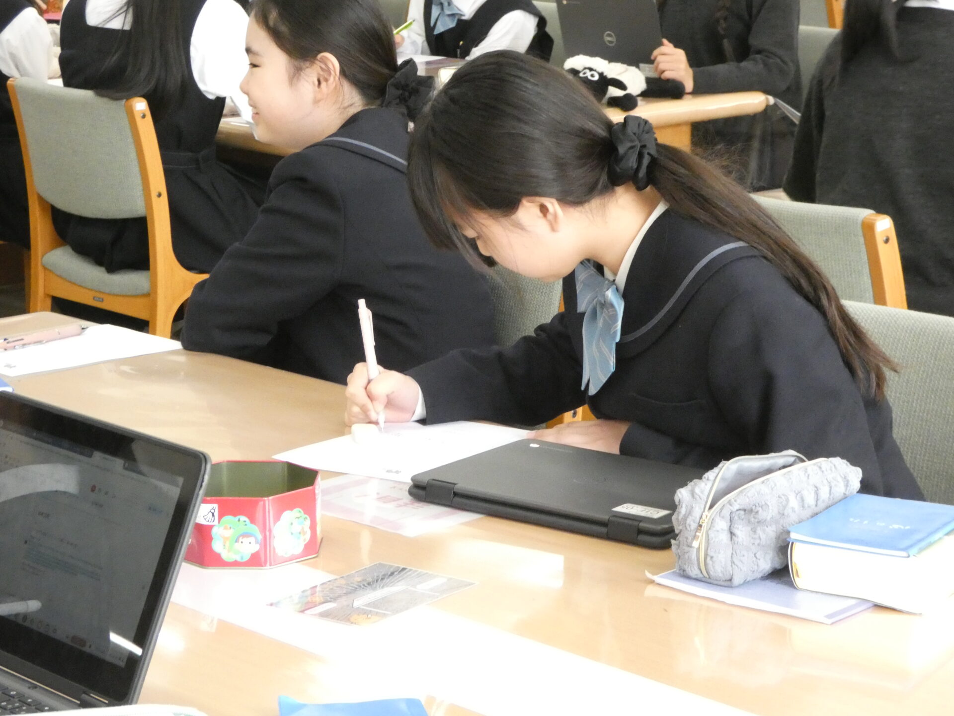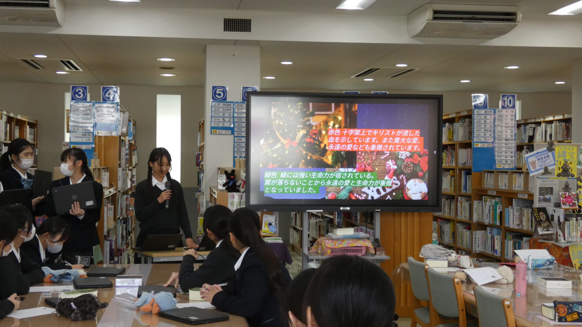 宗教の授業内でクリスマスについて各グループで調べ学習を行いました。今日は、発表の日とのことで少しお邪魔してきました。