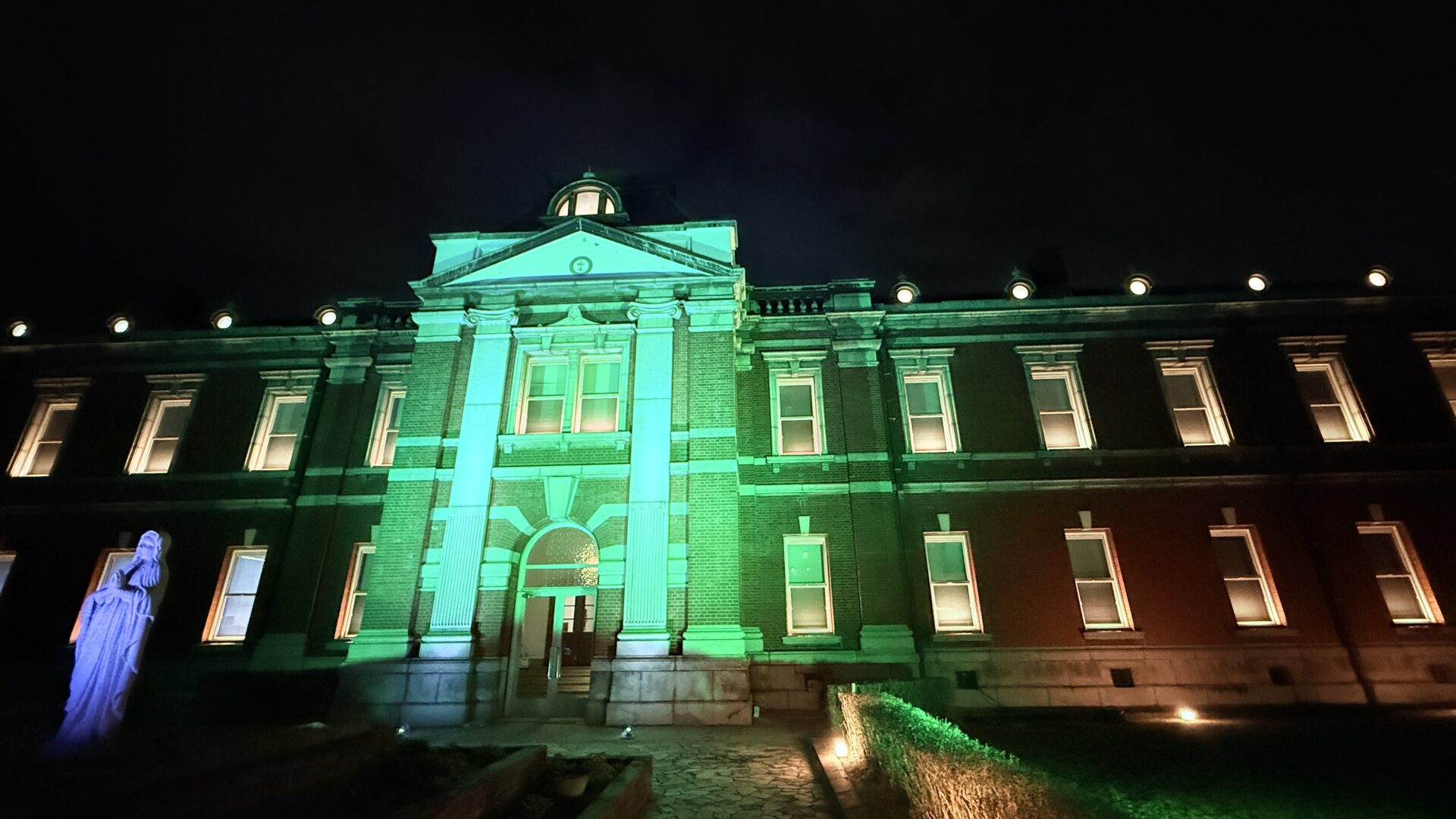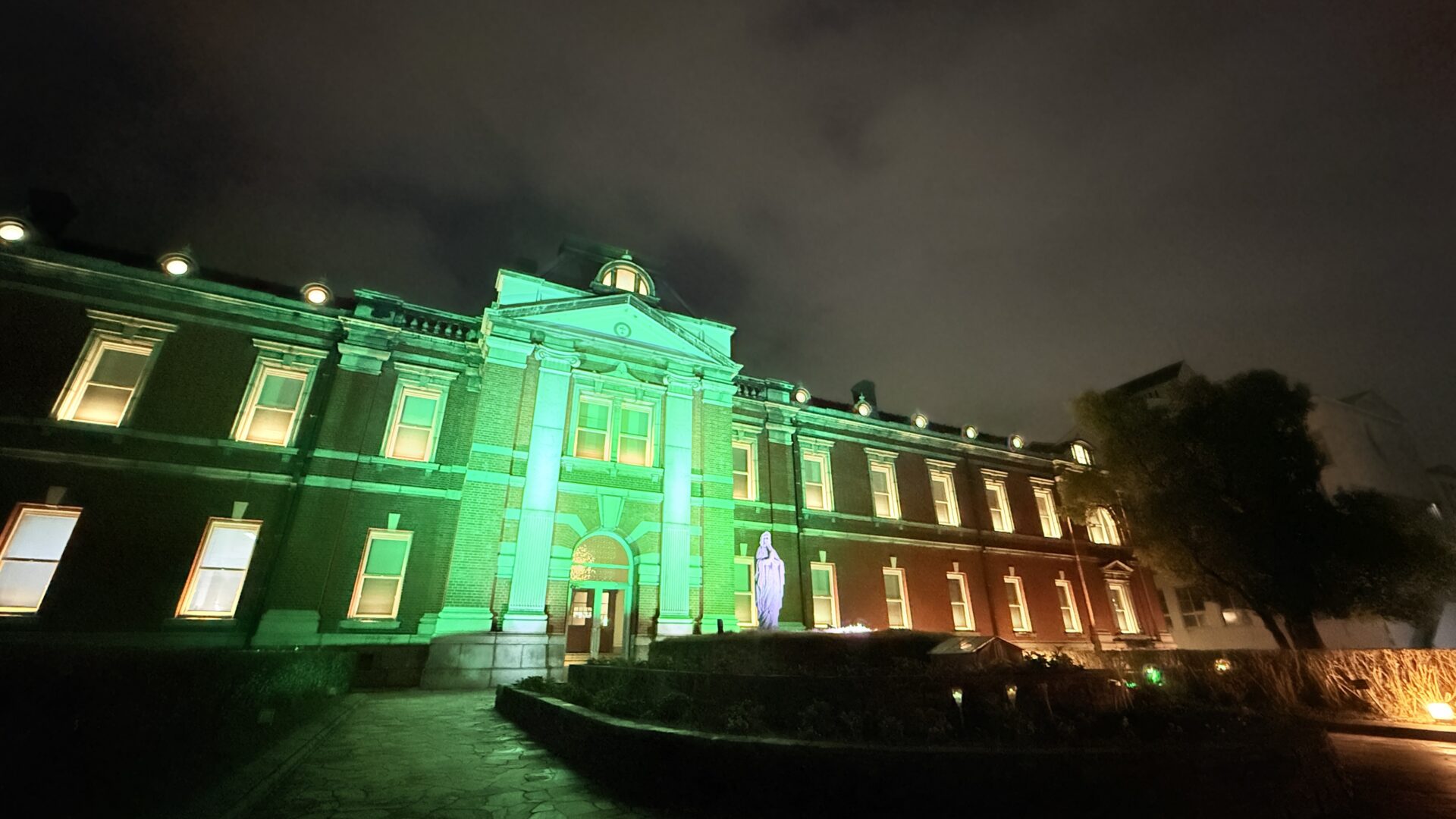子宮頸がん制圧を目指すWHOプロジェクトに本学院も参加し、今年度も本キャンパス(本館)のライトアップをしました。