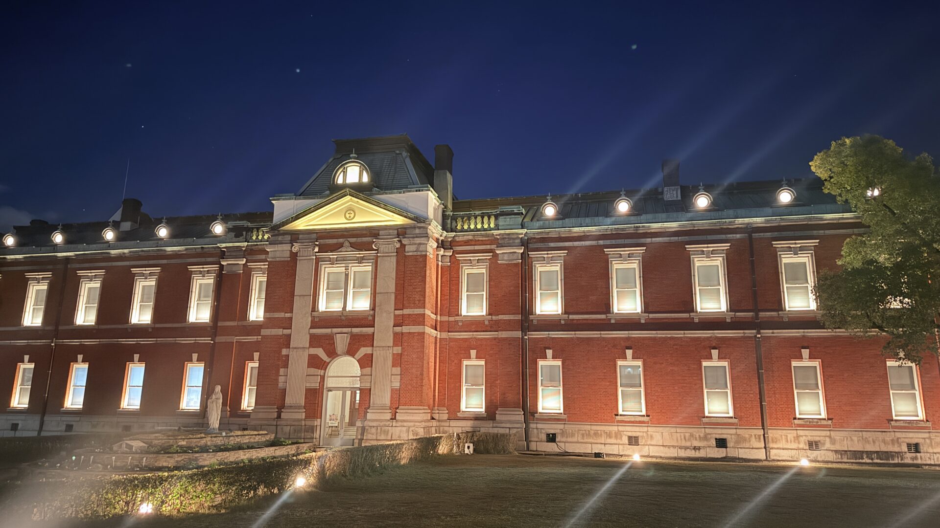 夜はライトアップされ、隠れたフォトスポットになっています。