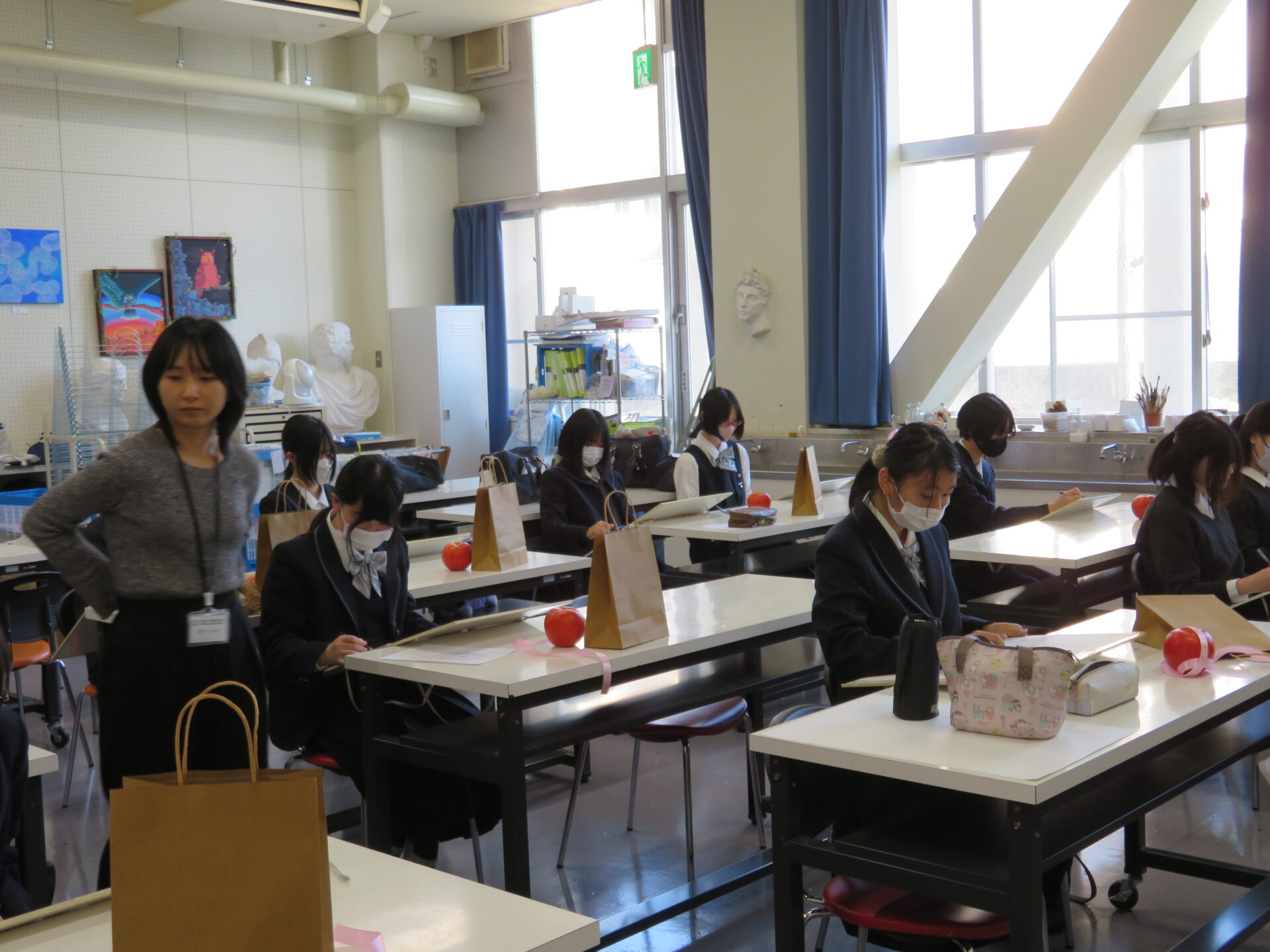 2025.12.21中学・高等学校中高_卒業生(美術部) 部活動 12月20日。美術系に進学した卒業生が帰ってきてくれました。在校生の時に在籍していた美術部の部員に特別講演をしてくれました。またいつでも帰ってきてくださいね!