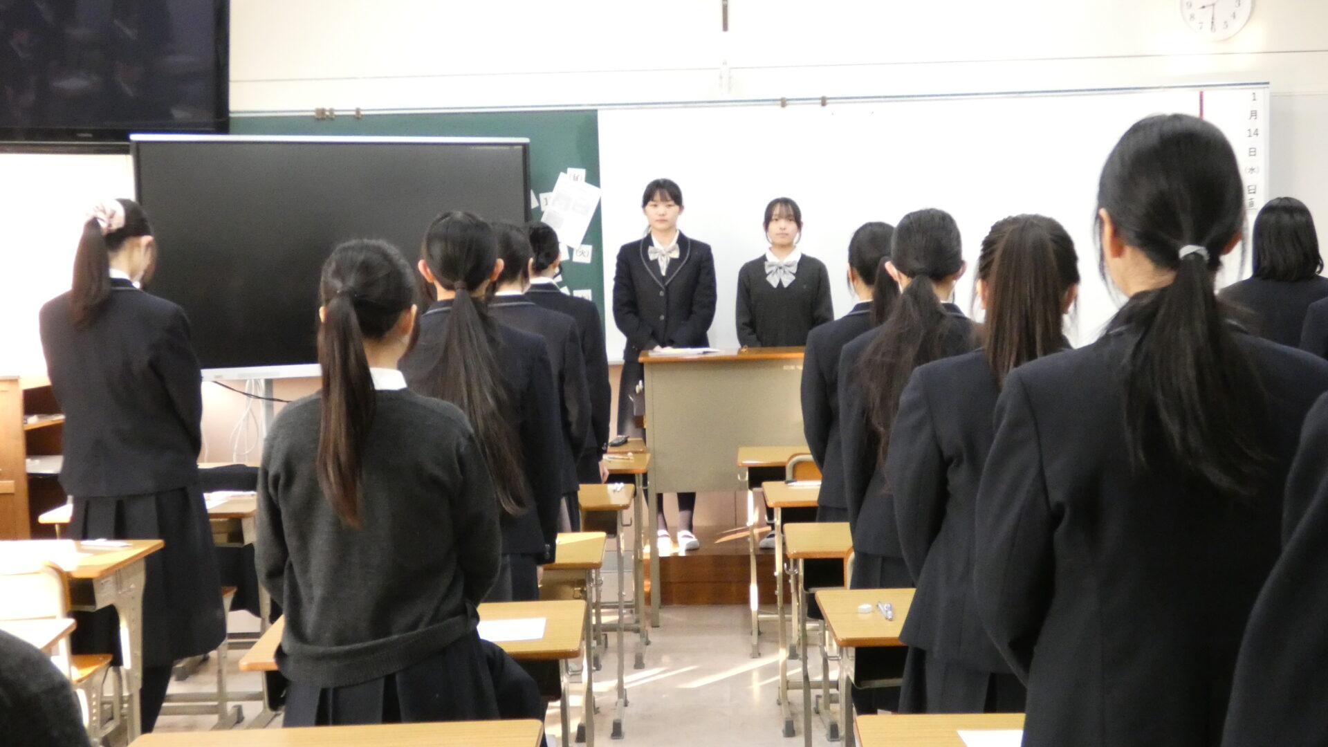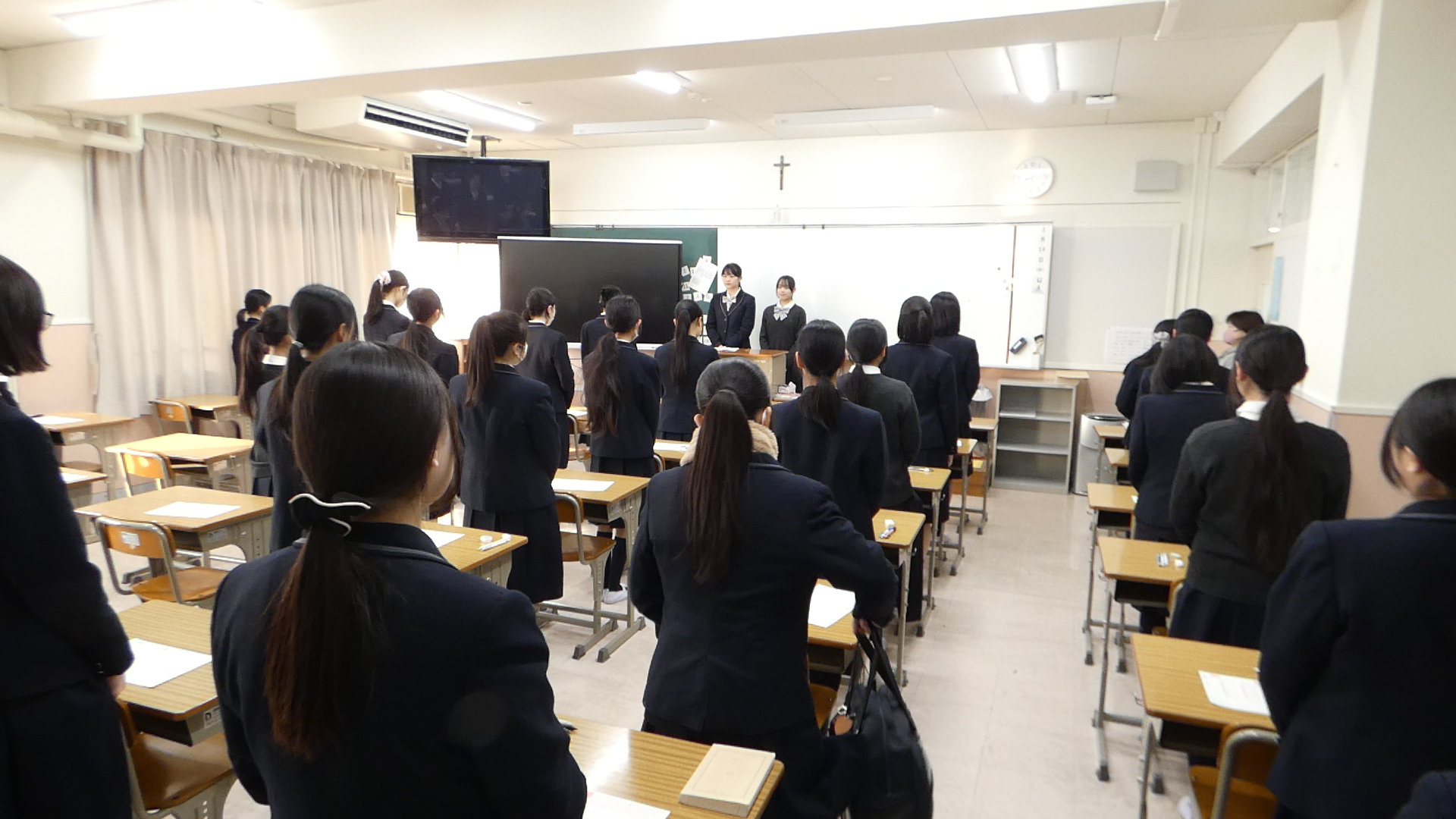 8:30の前からチャイムが鳴るのを静かに待ちます。宗教委員さんが教室の前に立ち、放送で流れてくるお祈りを先導します。慌ただしい朝ですが、落ち着いた心でお祈りをすることを心掛けています。