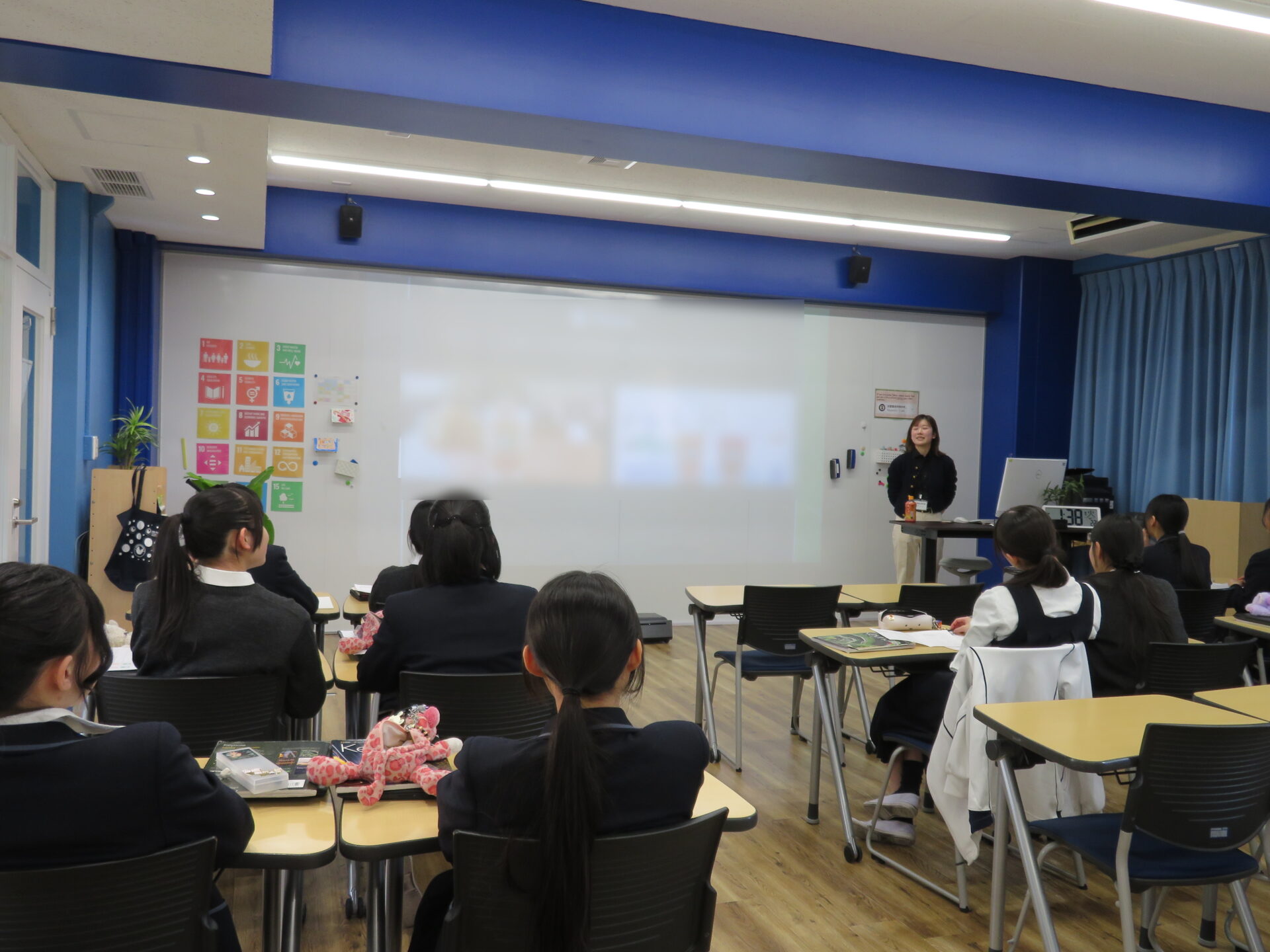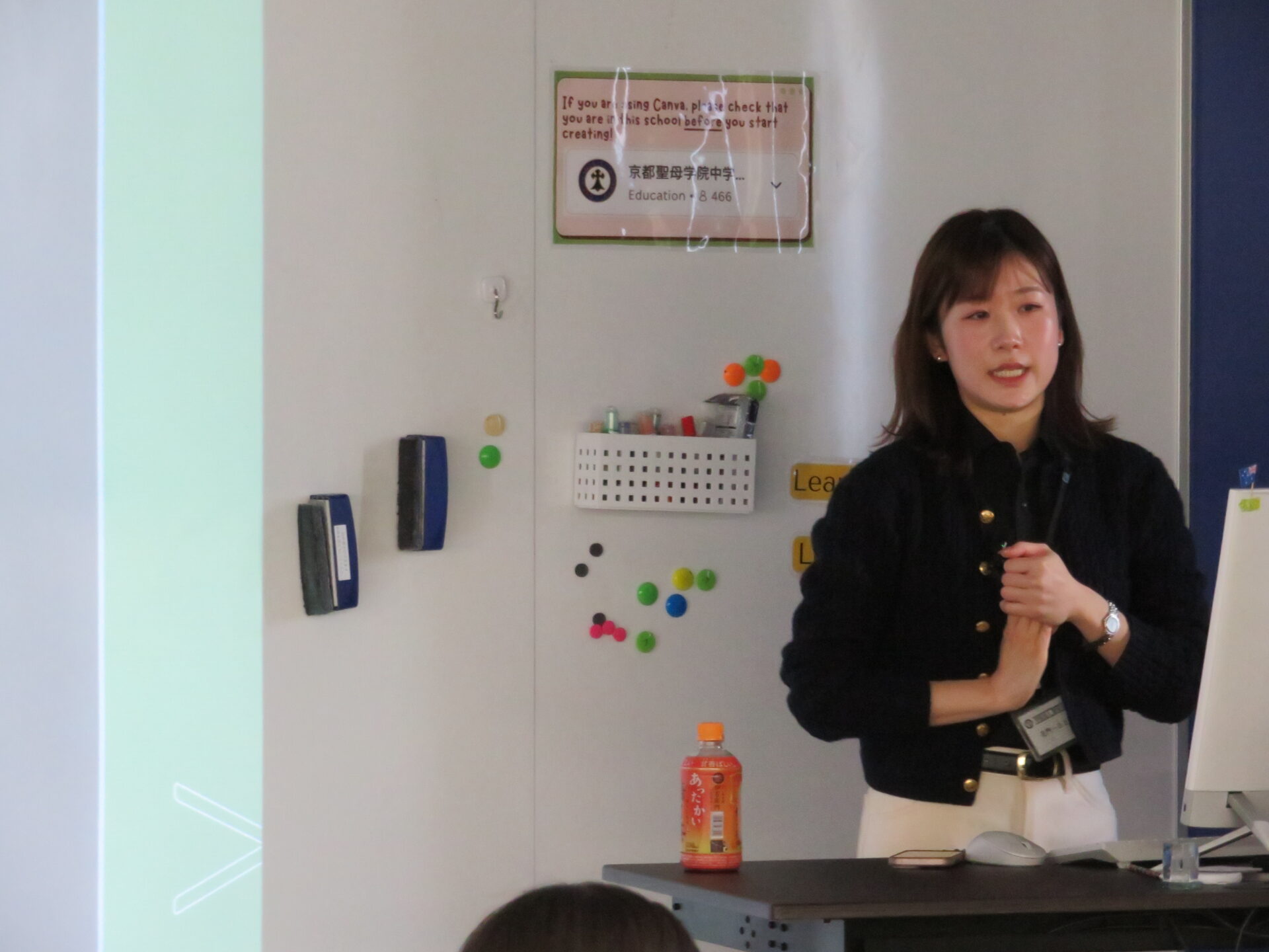 卒業生として、働く女性として、高校から現在に至るまでの熱い話もしていただきました。在校生からすると憧れの存在になったのではないでしょうか。講演後はネイティブ教員も交えて様々な話をしておりました。