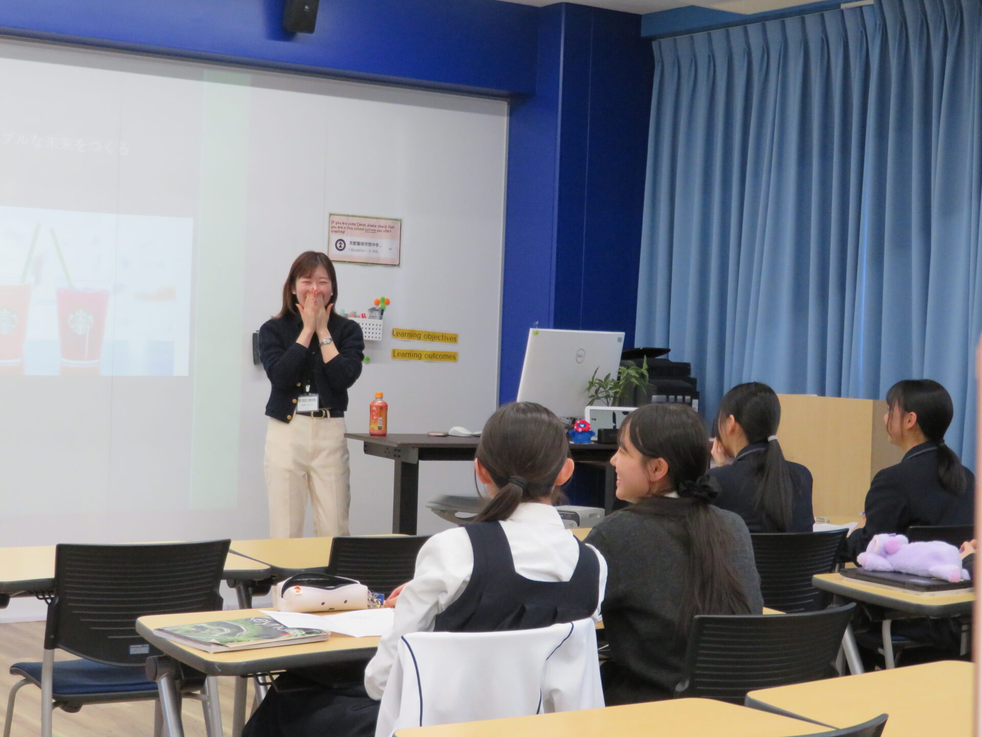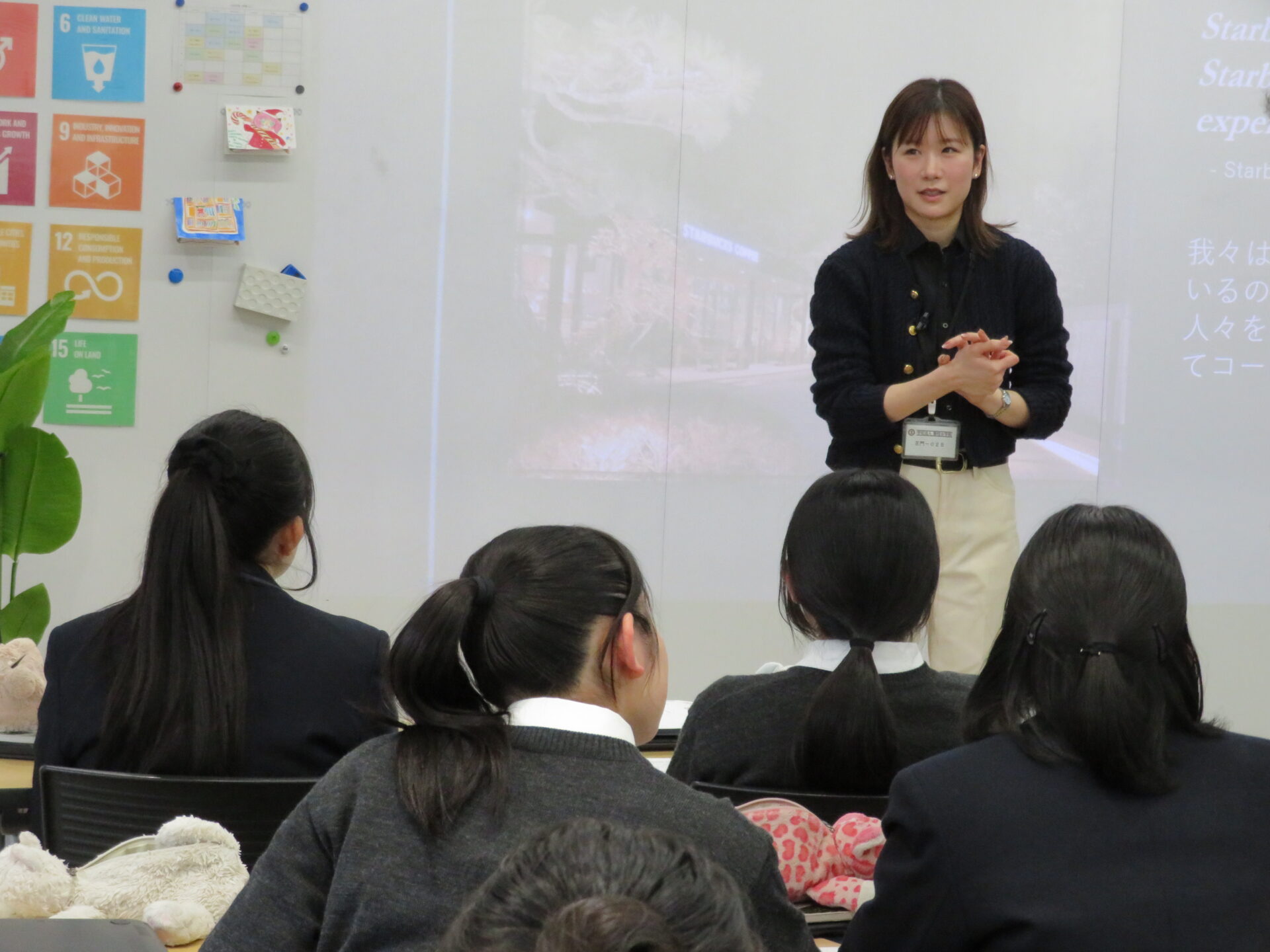 現在スターバックスコーヒージャパン株式会社に勤務されている本校の卒業生が、特別講演会のために来校してくれました。