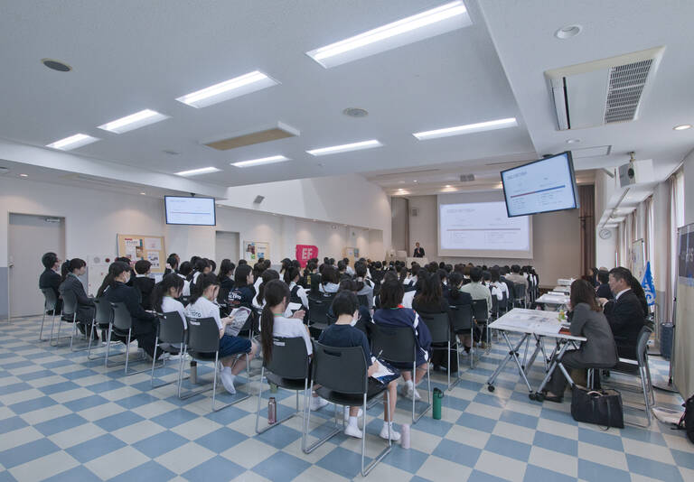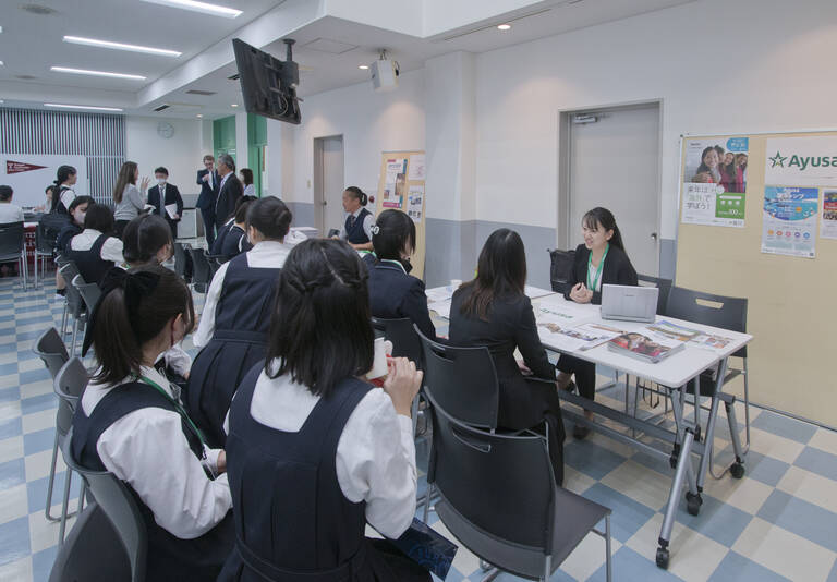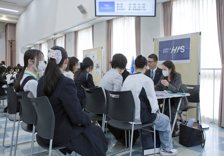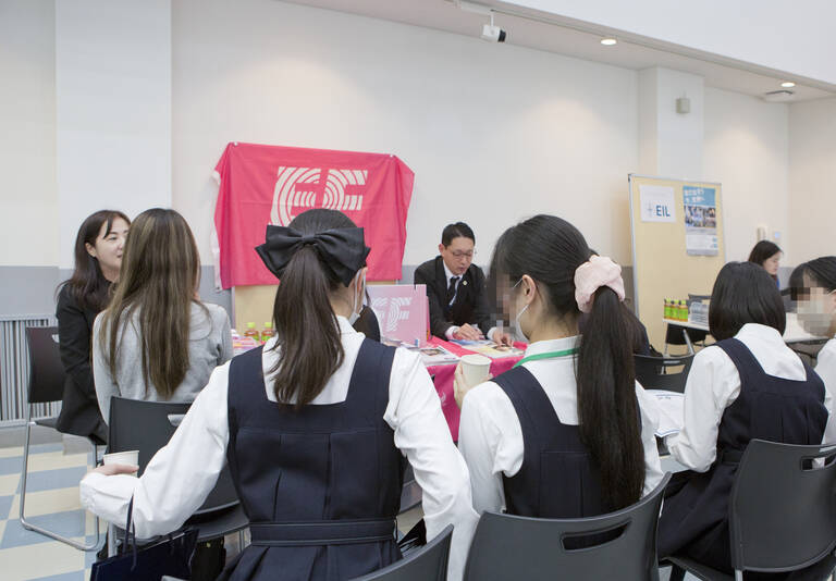 2025.04.20中学・高等学校中学校高等学校GSCⅠ類GSCKYOTO留学フェア@京都聖母 海外交流講演会 京都聖母学院中学校・高等学校主催の「KYOTO留学フェア」を開催させていただきました。留学サポートをされておられる企業様、本校キャンパス内にあるテンプル大学ジャパンキャンパス京都にブース出展いただき、一般の方、本校在校生の約200名が参加をしました。当日は、報道関係の方も来校されるなど、会場内はとても賑わっておりました。