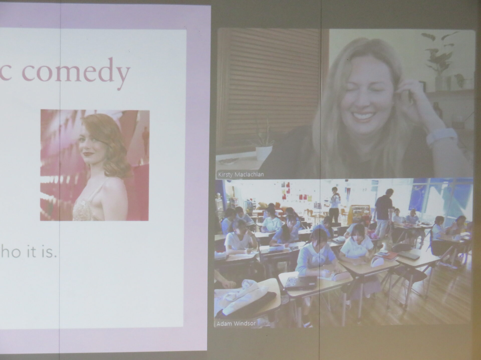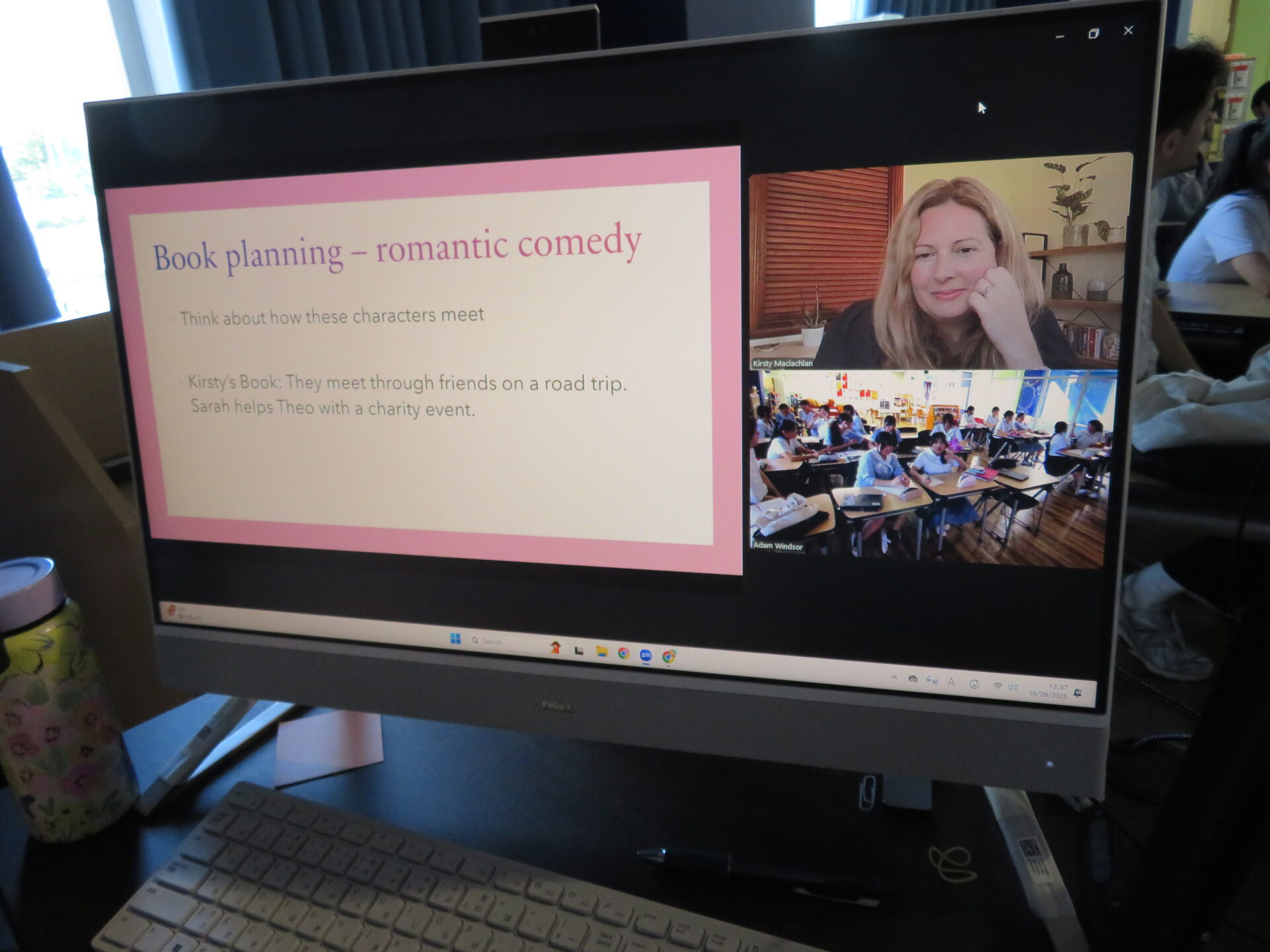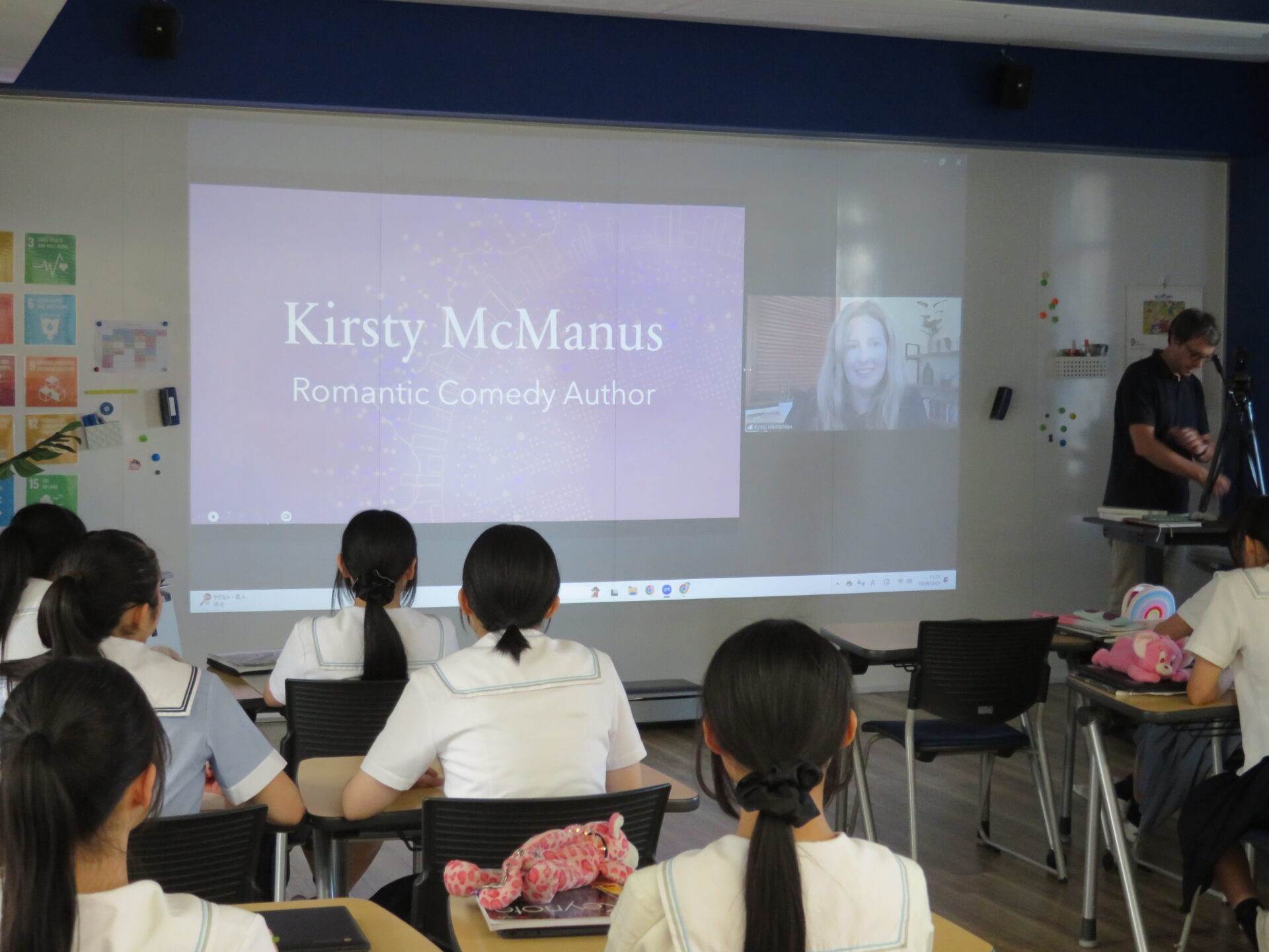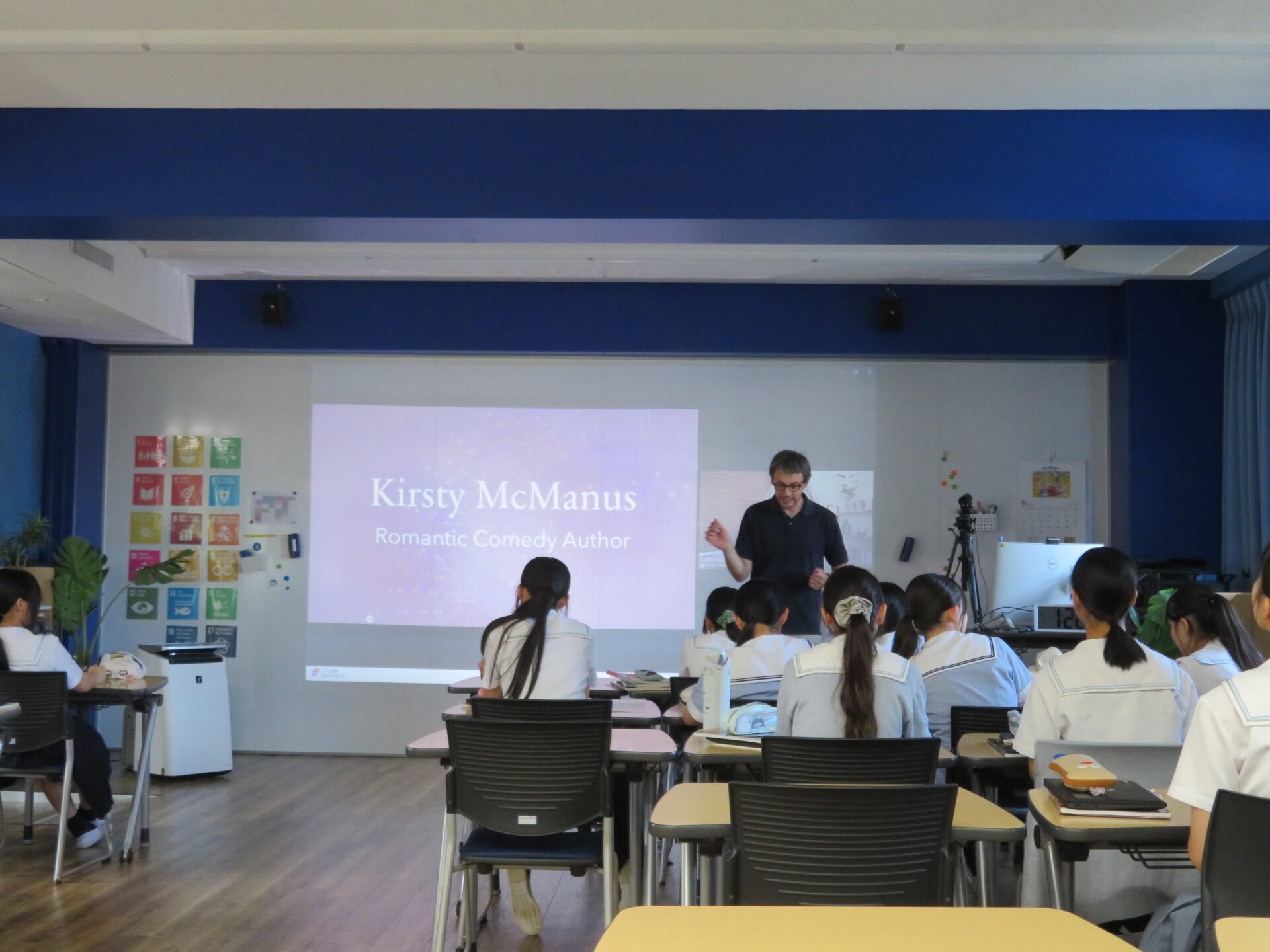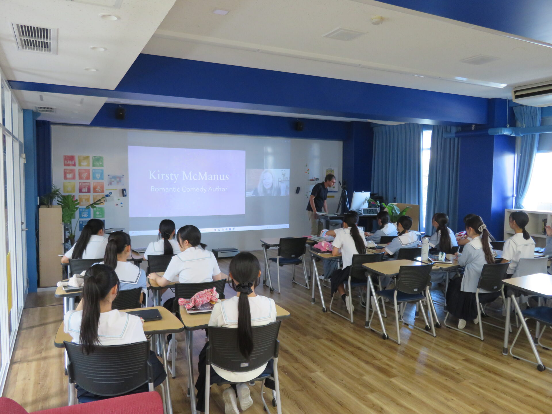 2025.09.20高等学校Ⅰ類GSC高校GSC_オーストラリアの小説家と交流 海外交流 高校1年のGSCの生徒たちが、オンラインで海外の方と交流をしていました。今回は、オーストラリアの小説家の方に講師をしていただきました。高校生の恋愛をテーマに英語で小説を書いてみよう!という内容だったようです。