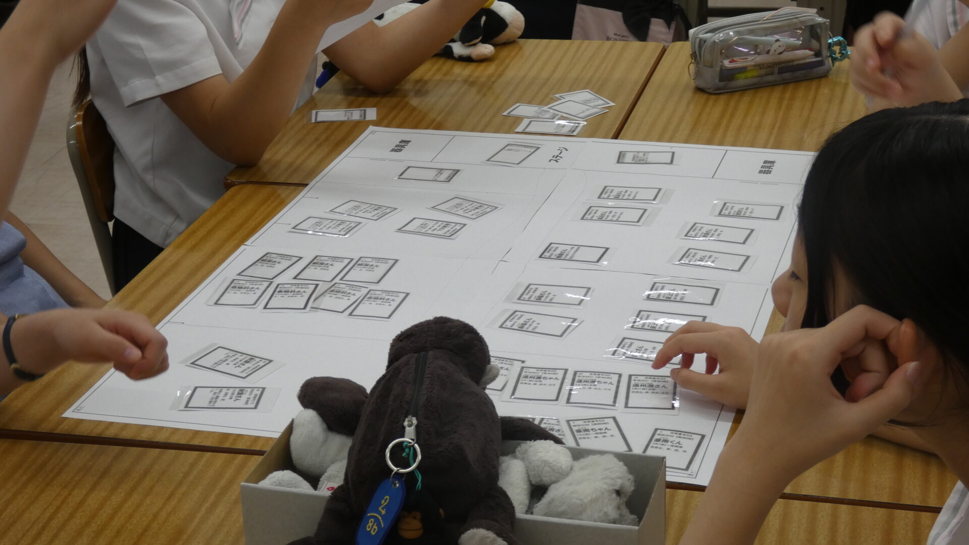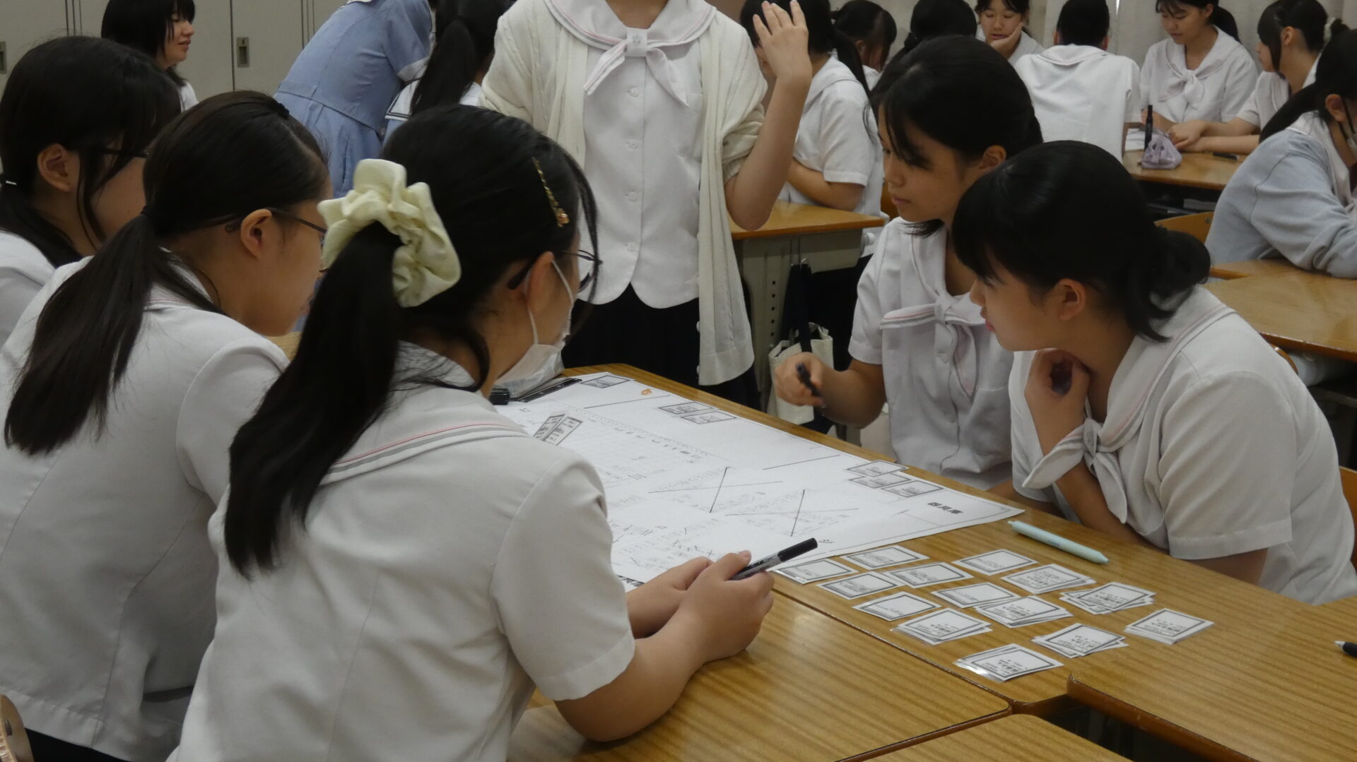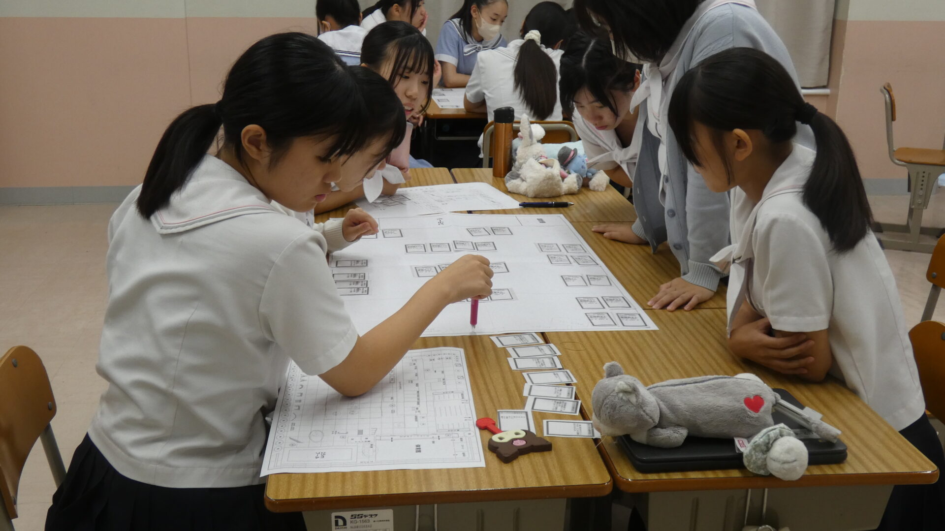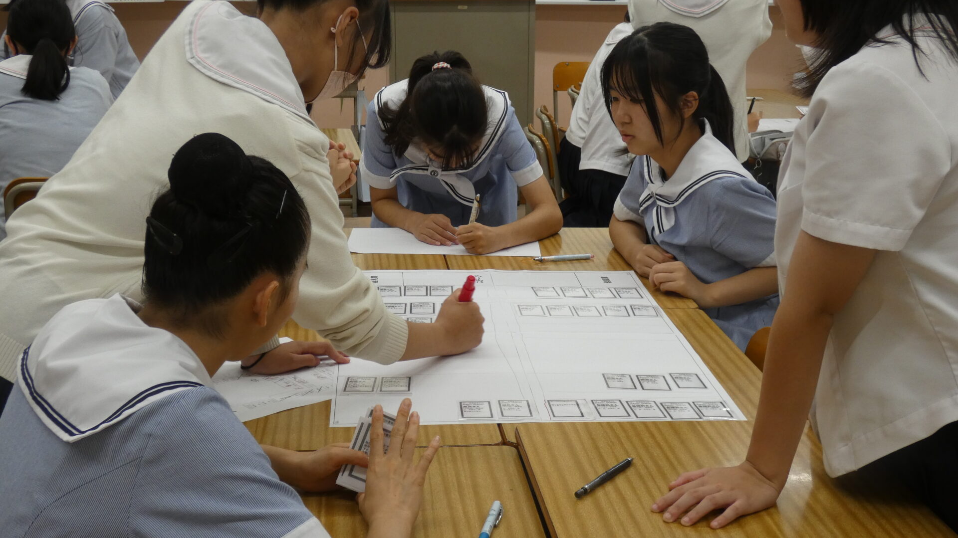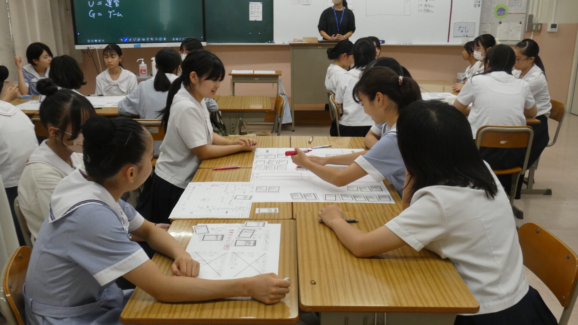 2025.09.21中学校Ⅲ類Ⅱ類中学_避難所HUG① 中学2年生のロングホームルームの授業を見学に行きました。避難所は、様々な年代の方、体調面に配慮が必要な方など沢山の方が利用されます。利用される方にとって少しでも快適に過ごしてもらえるレイアウトとは…、みんな真剣に意見を出し合う姿が印象的でした。