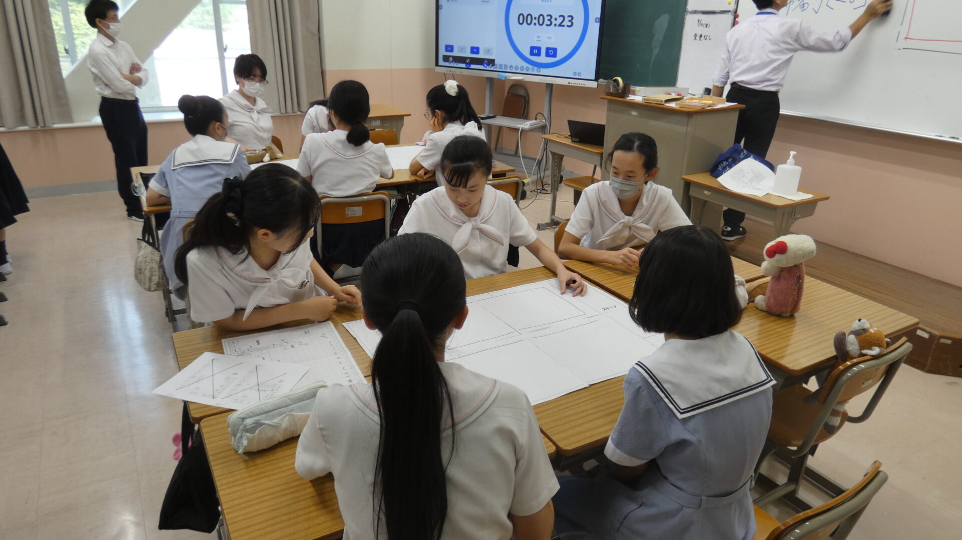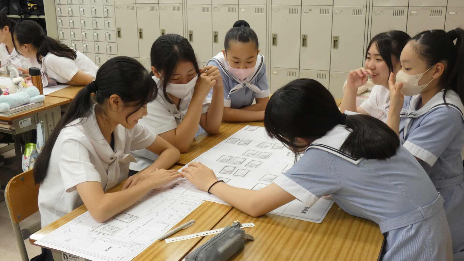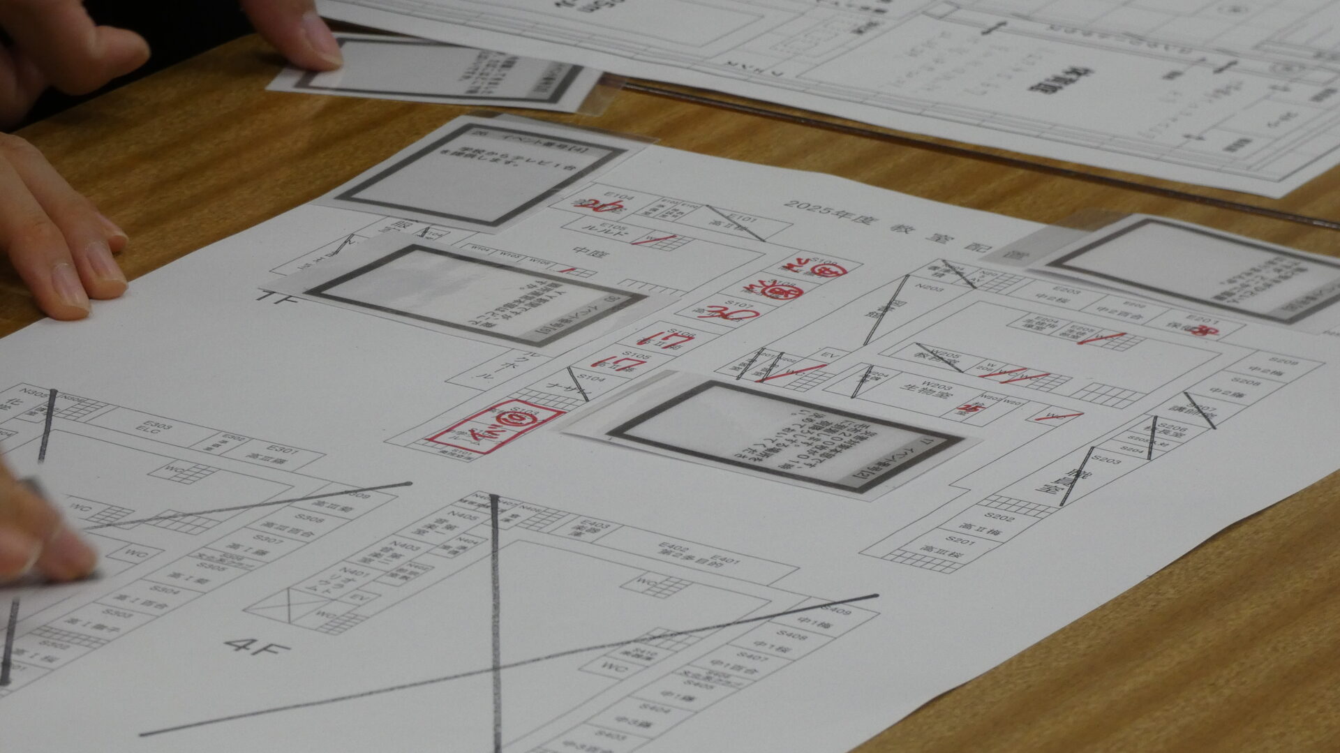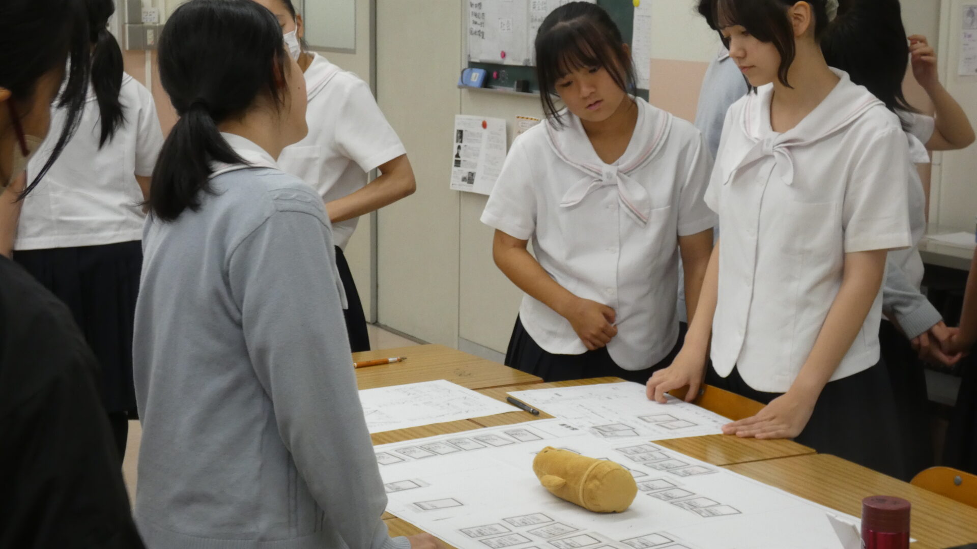 2025.09.21中学校Ⅲ類Ⅱ類中学_避難所HUG① 中学2年生のロングホームルームの授業を見学に行きました。避難所は、様々な年代の方、体調面に配慮が必要な方など沢山の方が利用されます。利用される方にとって少しでも快適に過ごしてもらえるレイアウトとは…、みんな真剣に意見を出し合う姿が印象的でした。
