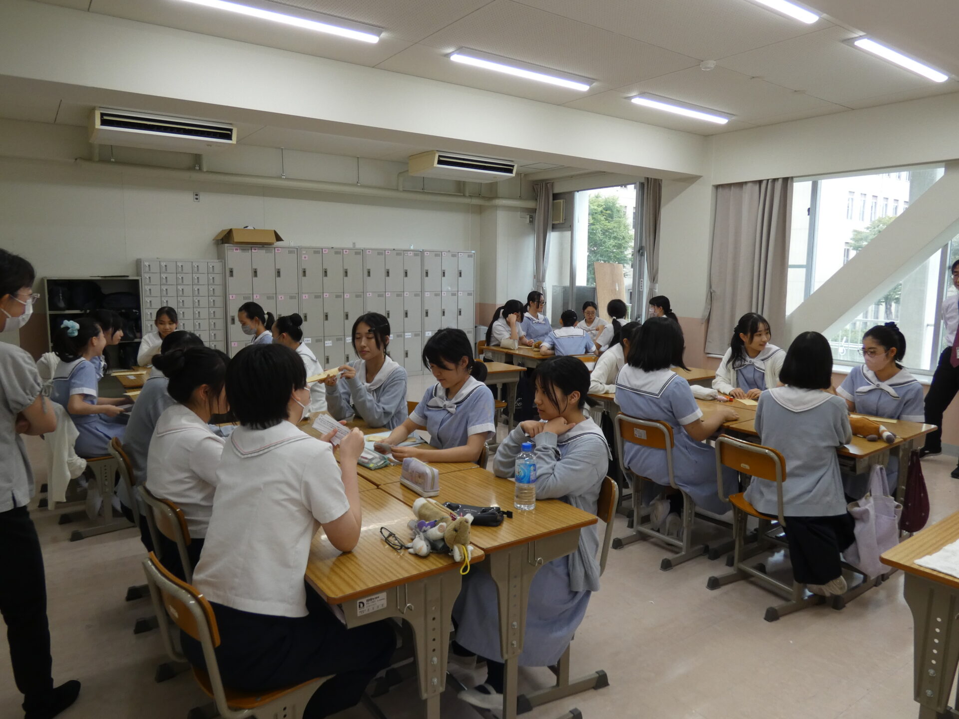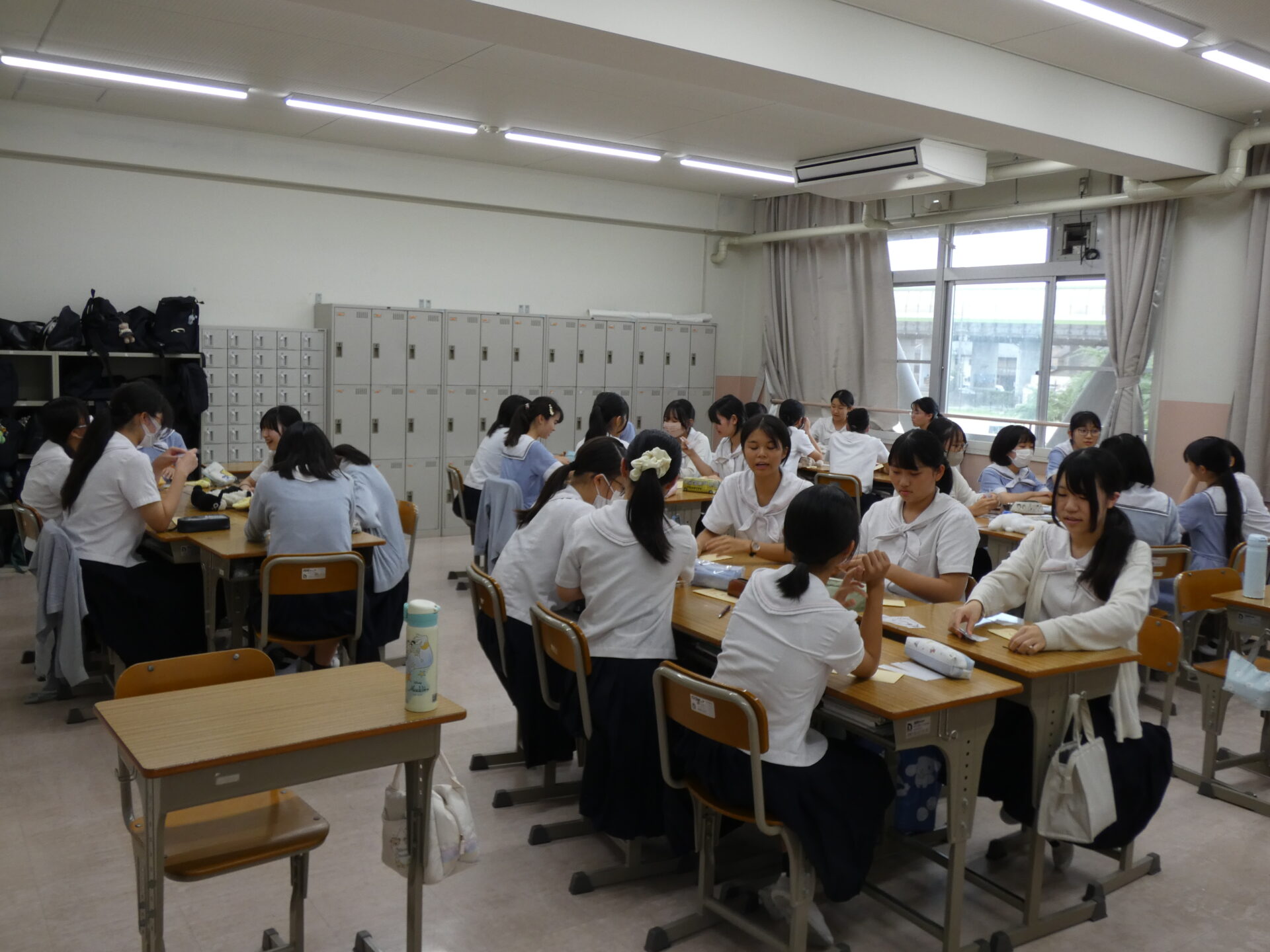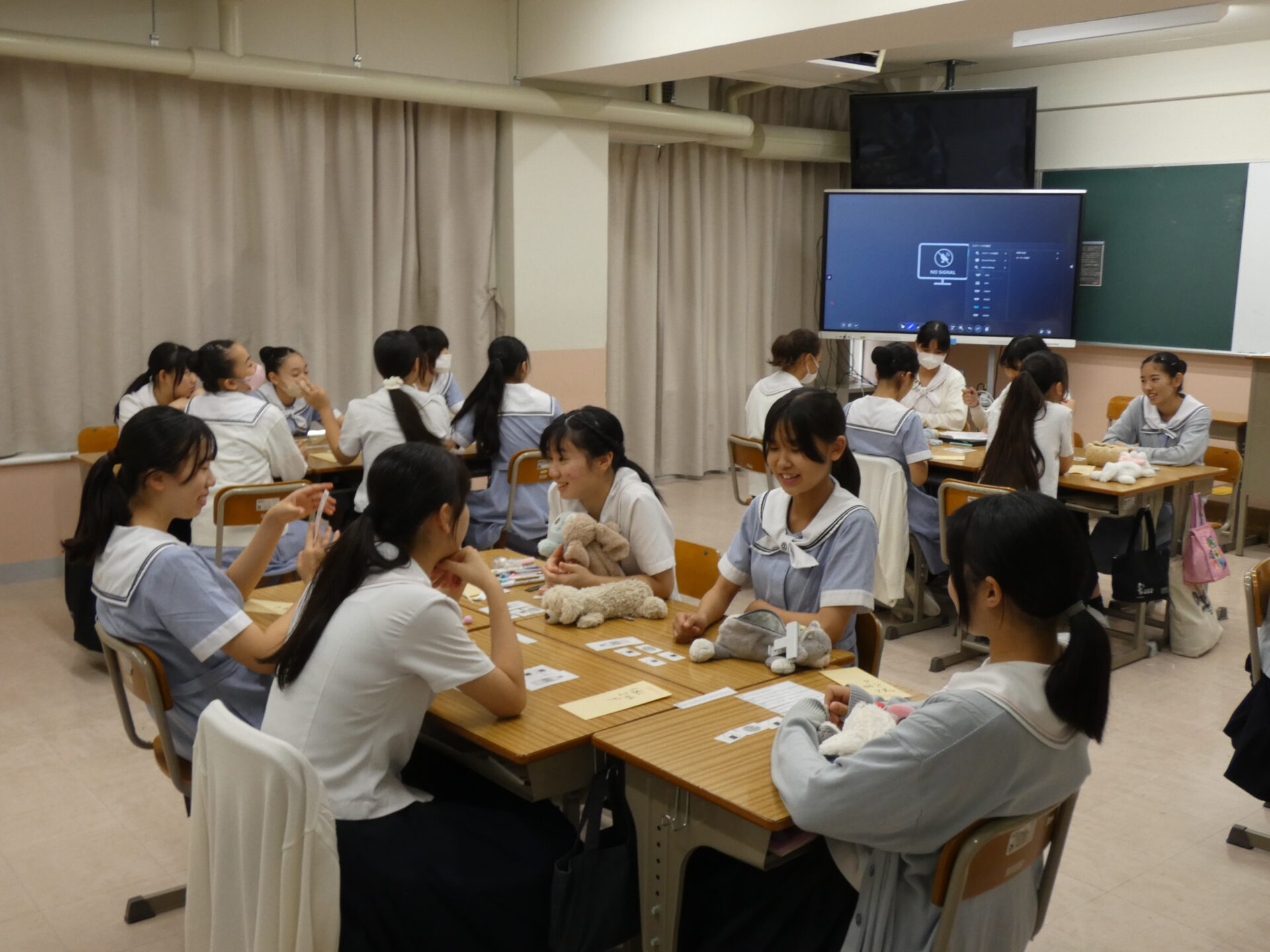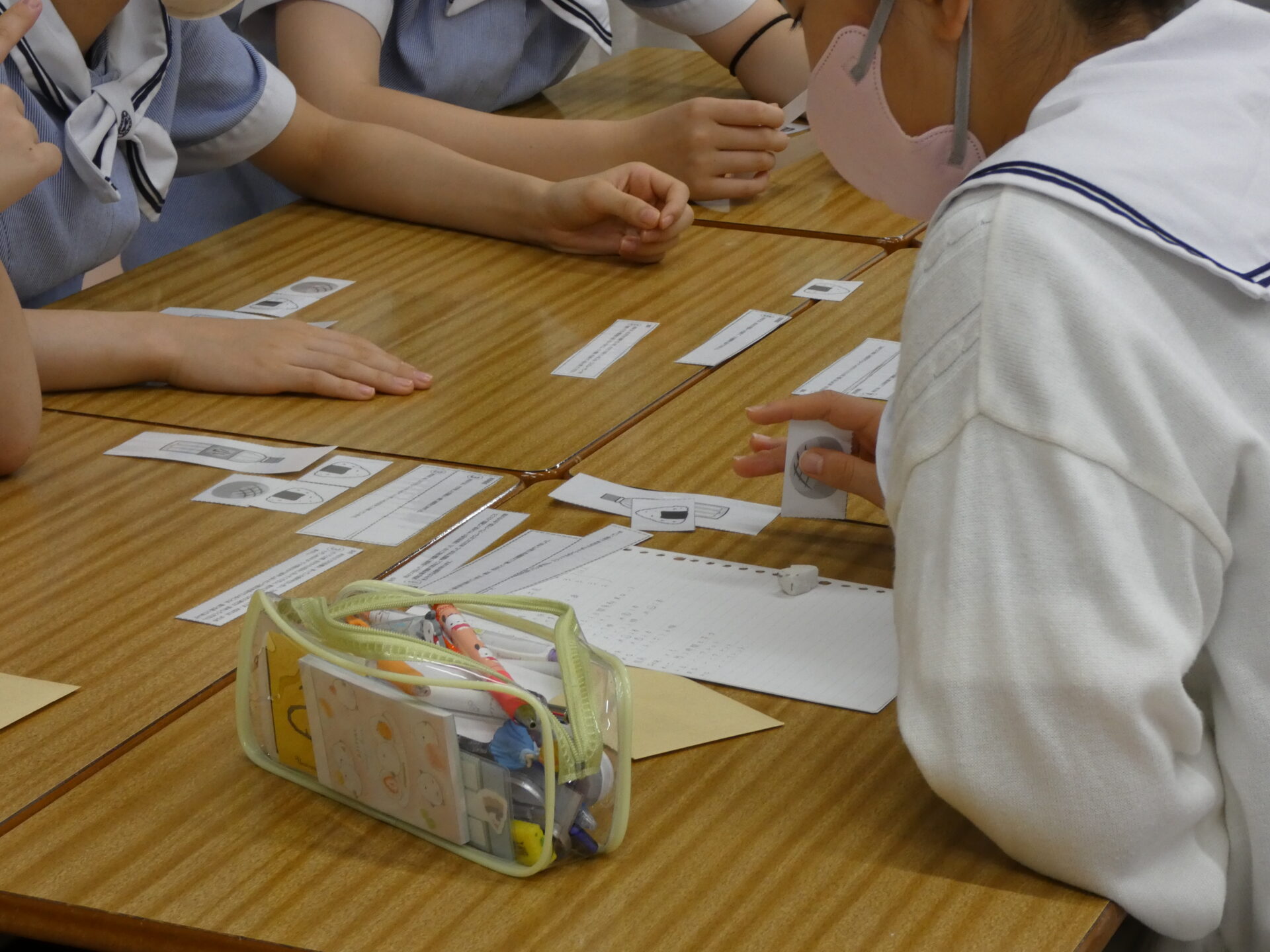 2025.09.26中学校Ⅲ類Ⅱ類中学_避難所HUG② 中学2年生のロングホームルームの授業です。先週に引き続き避難所について議論を交わしました。各家庭の家族構成や、怪我や持病の状況などに配慮し、避難所をみんなが快適に利用できるシステムを考えています。